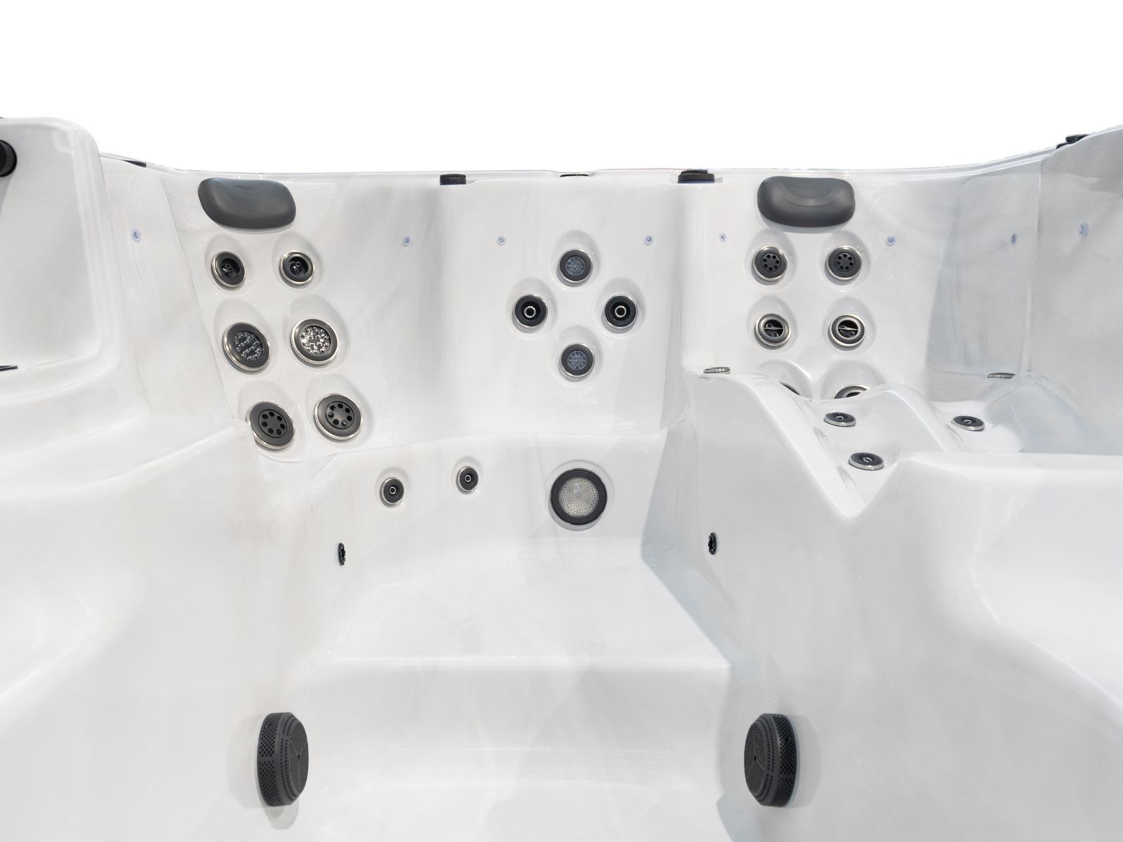 Der Titan Swim Spa ist die ultimative Wahl für alle, die sowohl Entspannung als auch Fitness in einem geräumigen, leistungsstarken Design suchen. Der Titan bietet reichlich Platz zum Schwimmen, Trainieren oder Entspannen. Er verfügt über eine Sitzbank mit 9 Sitzen und 1 Liege, die bequem Platz für bis zu 10 Personen bietet.
