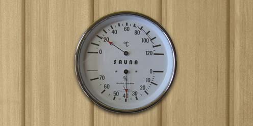 Prüfen Sie die Temperatur und die relative Luftfeuchtigkeit in Ihrer Sauna mit einem unserer Messgeräte.