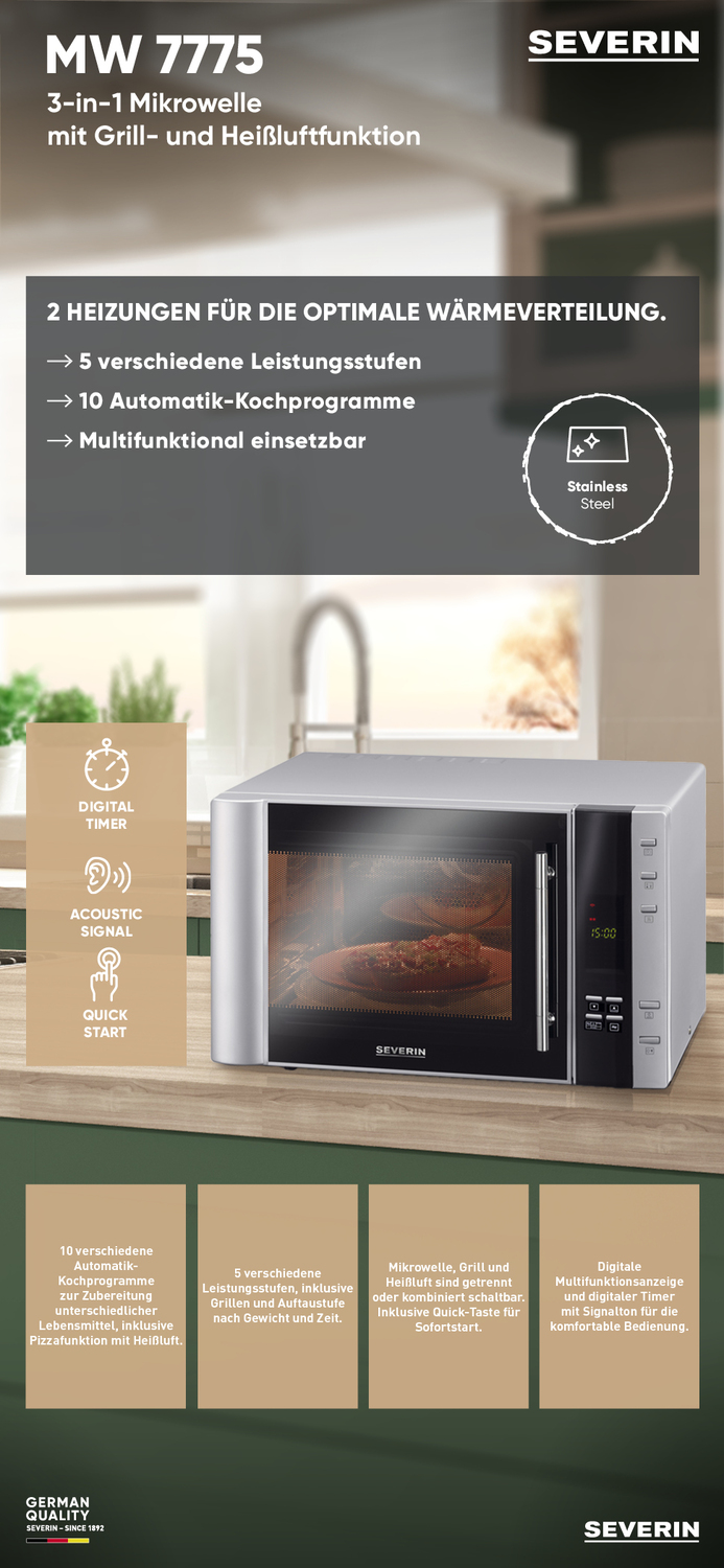 - SEVERIN Mikrowelle 3-in-1 mit Grill- und Heißluftfunktion MW 7775