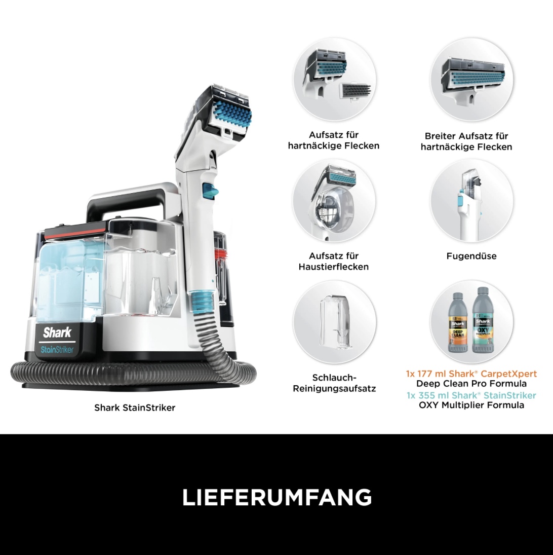 Produktinformationen "Shark StainStriker Flecken- und Polsterreiniger mit 5 Aufsätzen inkl. Haustier-, Fugendüse & Schlauchreiniger PX200EUT"