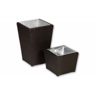 - 1x Softub Pflanztopf aus Polyrattan mocca 30 cm mit Zinkeinsatz Blumenkübel
