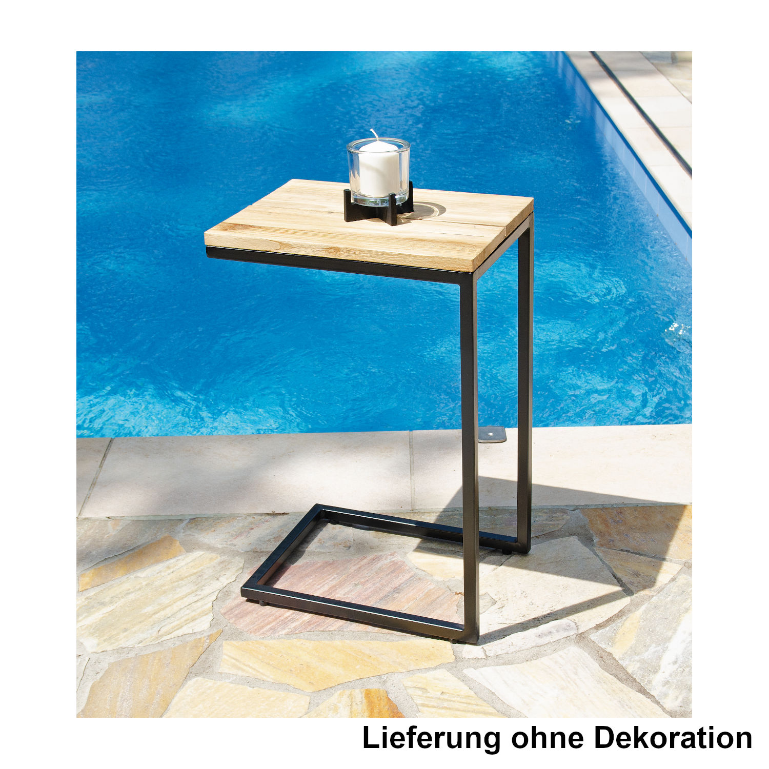- Tischplatte aus hochwertigem Teakholz