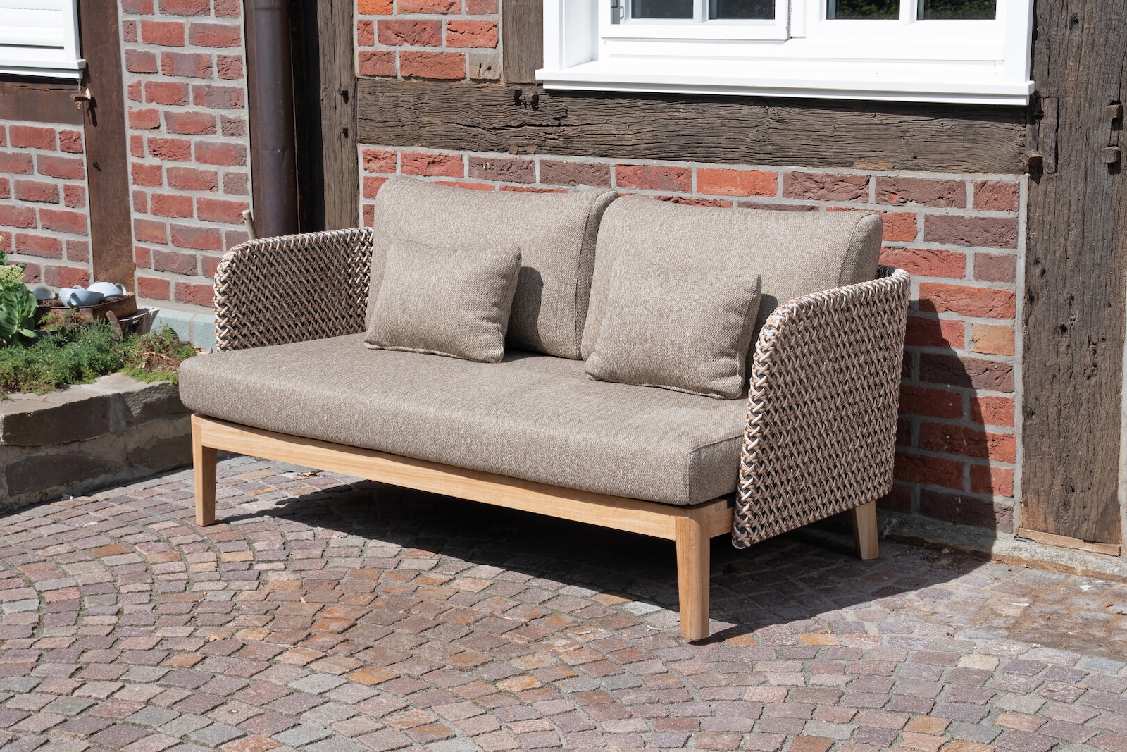 - Inkl. Sitz- und Rückenkissen und 2 kleine Kissen