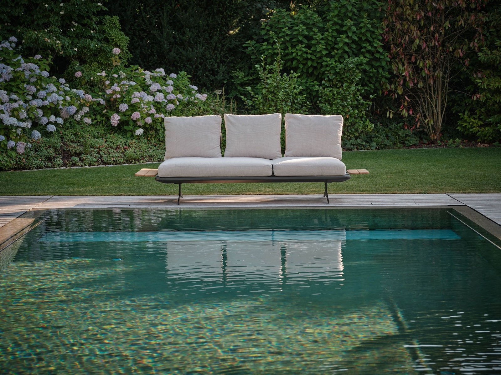 Die Lounge-Bank lässt sich ideal mit weiteren Modulen der Enya Lounge Kollektion kombinieren, um individuelle Loungesets zu gestalten.