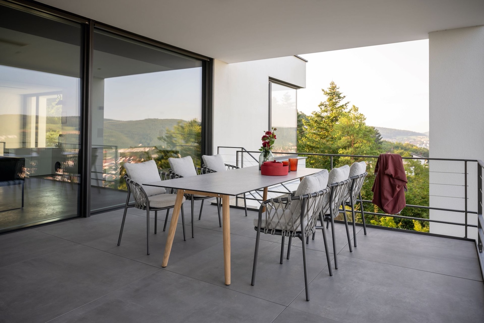 Dank seiner kompakten Maße eignet sich der Klea Sessel ideal für Terrasse, Balkon oder Garten und lässt sich perfekt mit Dining- oder Loungetischen kombinieren. Die verwendeten Materialien sind pflegeleicht, UV-beständig und für den dauerhaften Outdoor-Einsatz konzipiert.