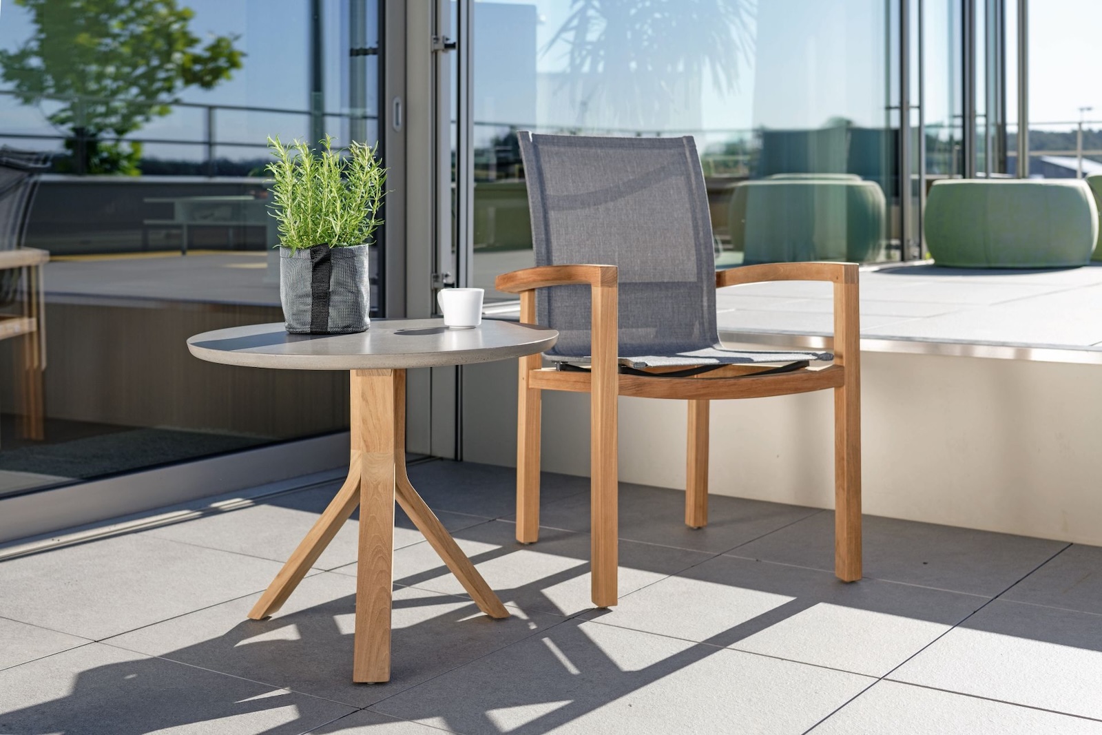 - Hochwertiges Teakholzgestell, langlebig und wetterbeständig