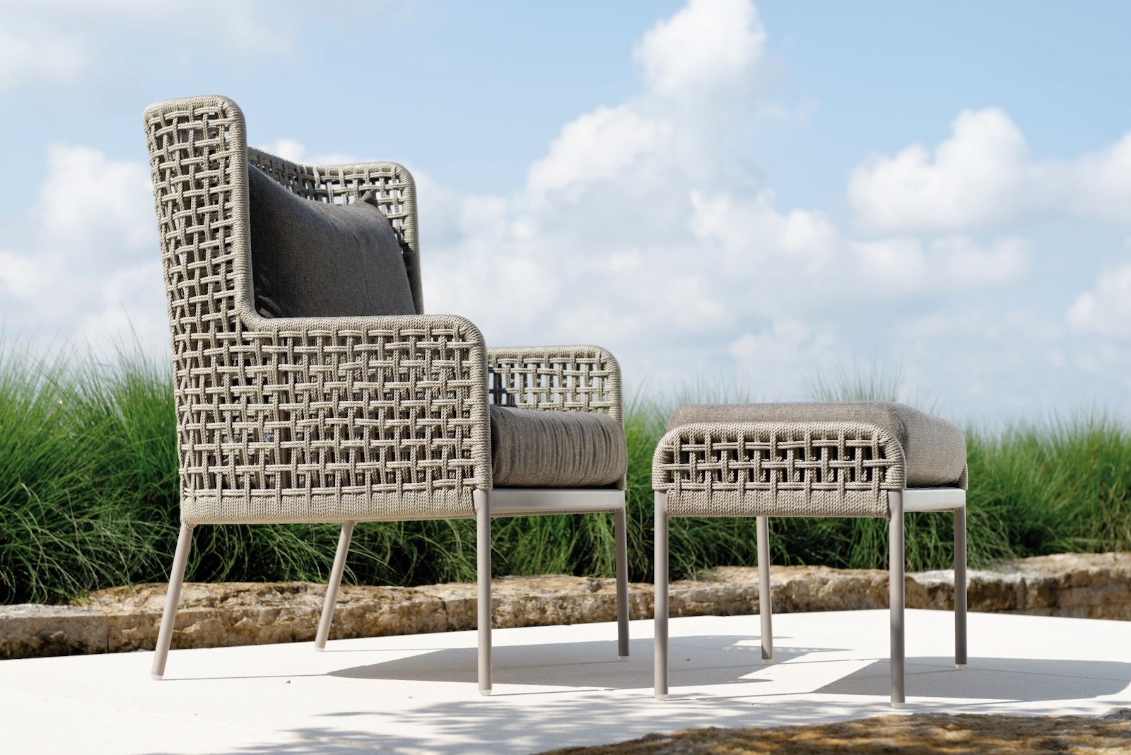 Der Lounge-Sessel Greta von Stern vereint Design und Komfort. Der Sessel ist mit hochwertiger Synthetikfaser bespannt und lädt zum Verweilen ein. Die gemütlichen Sitz- und Rückenkissen sorgen für höchstmöglichen Komfort.