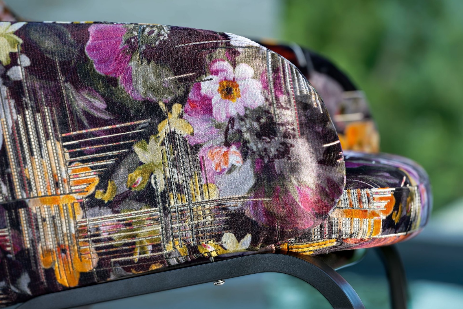 Der Stern Stan Gartensessel inklusive passendem Fußhocker verbindet elegantes Design mit höchstem Komfort. Das stabile Aluminiumgestell in Schwarz matt garantiert Langlebigkeit, während der Bezug aus 53 % Polyester und 47 % Viskose im Flower-Dessin für ein stilvolles, florales Highlight in Garten oder auf der Terrasse sorgt. Perfekt für entspannte Stunden im Freien.