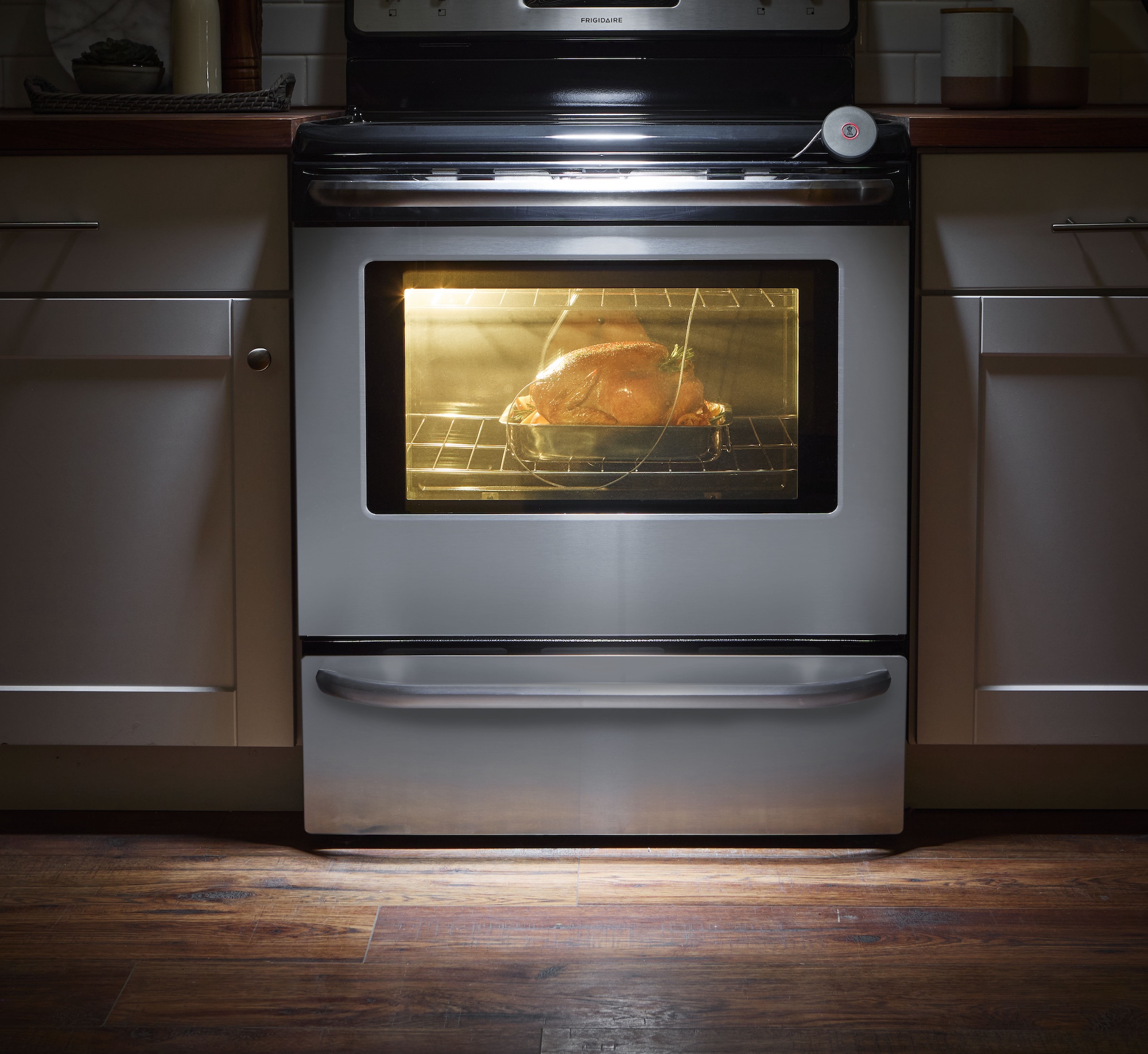Abwickeln des Kabels und dank der magnetischen Rückseite bleibt das Gerät immer in Reichnähe. Es funktioniert auch im Ofen zum Braten und Backen.