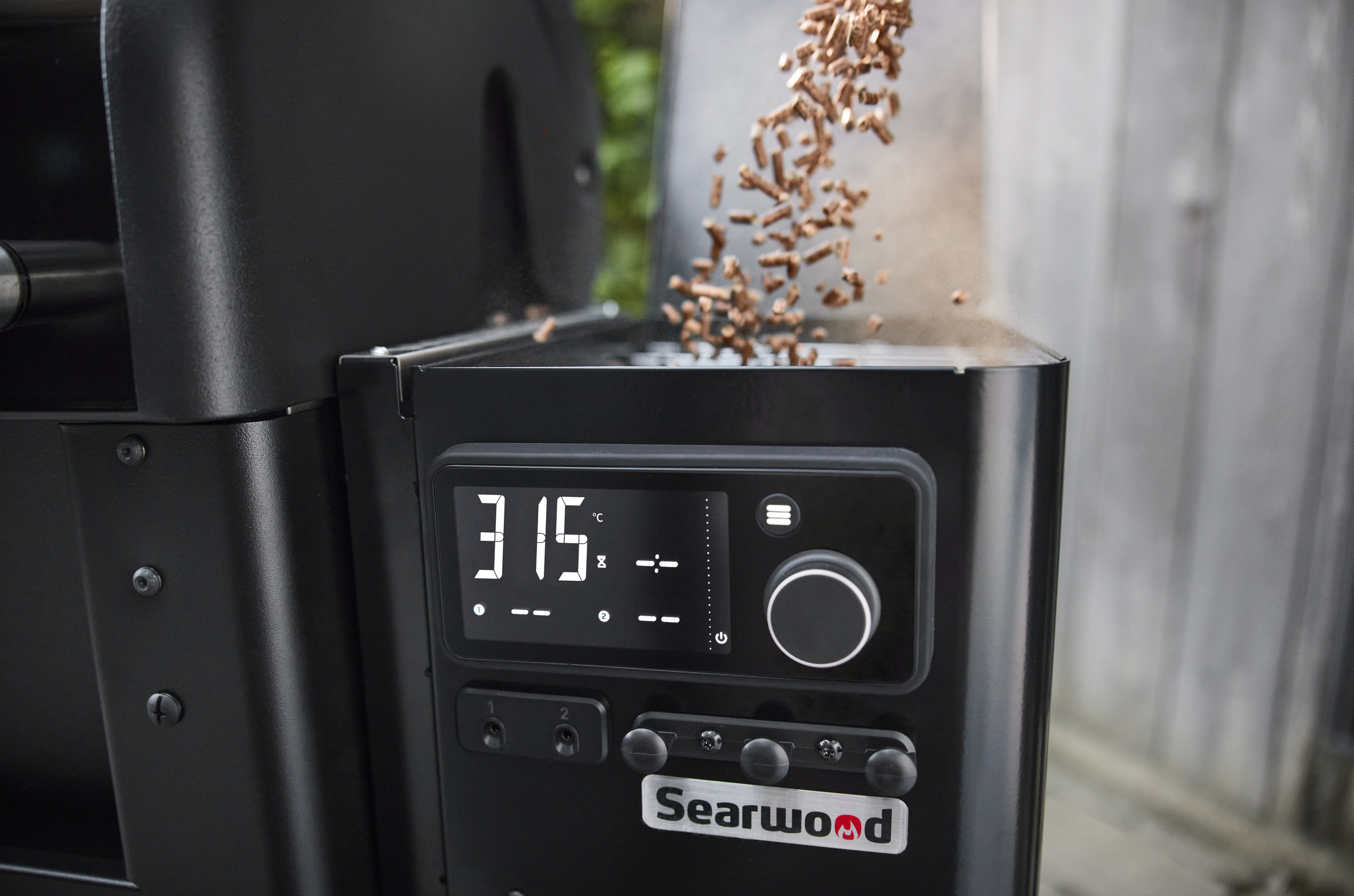 - Pellet-Tank seitlich angebracht für einfachen Zugriff und langes Grillen ohne Nachfüllen