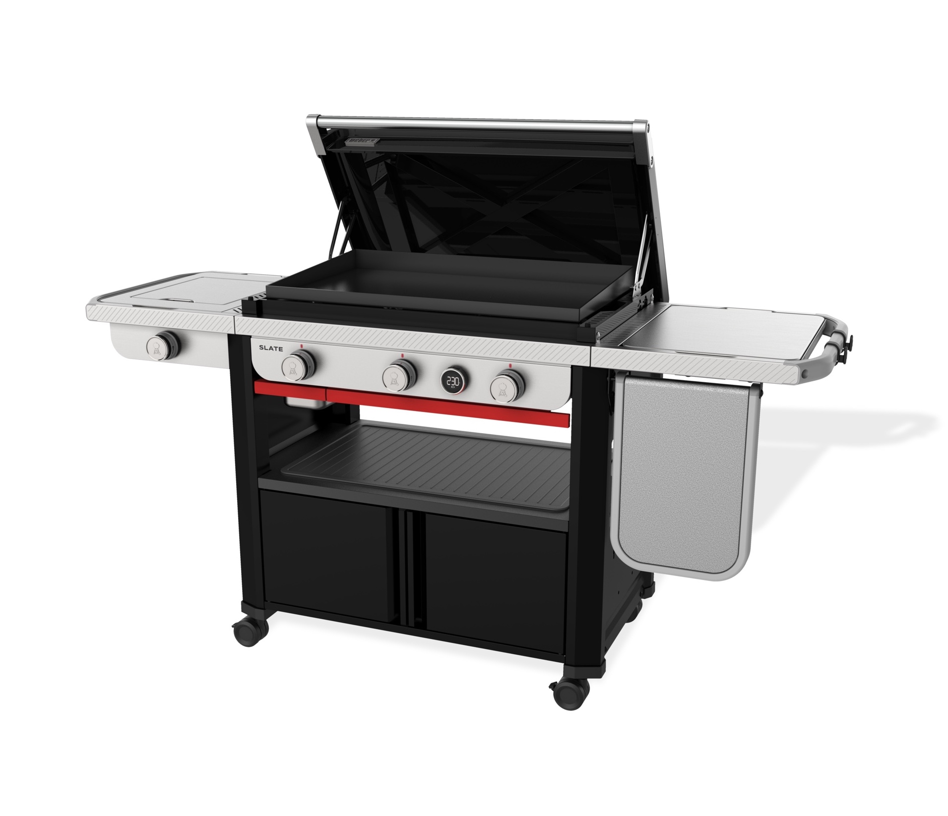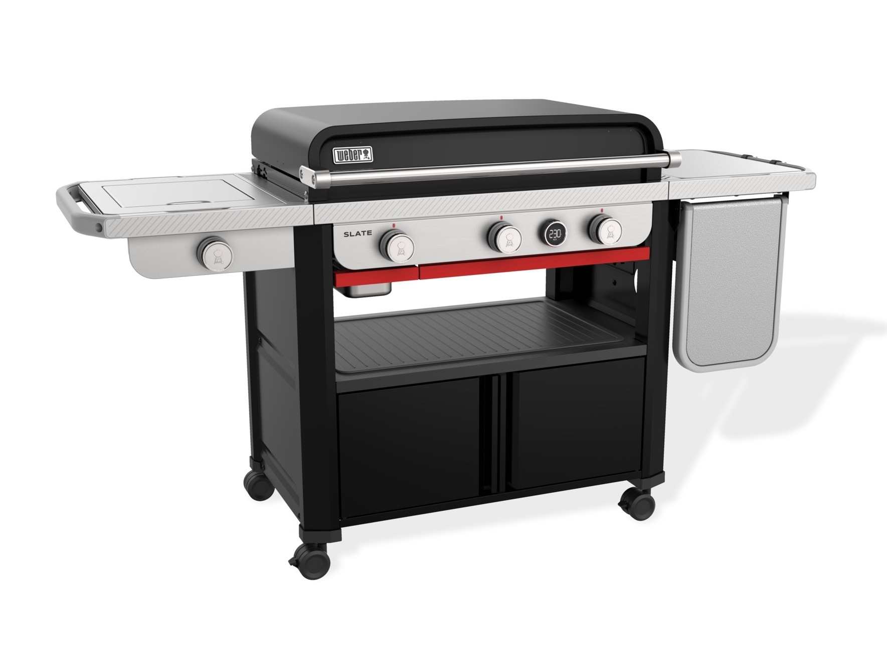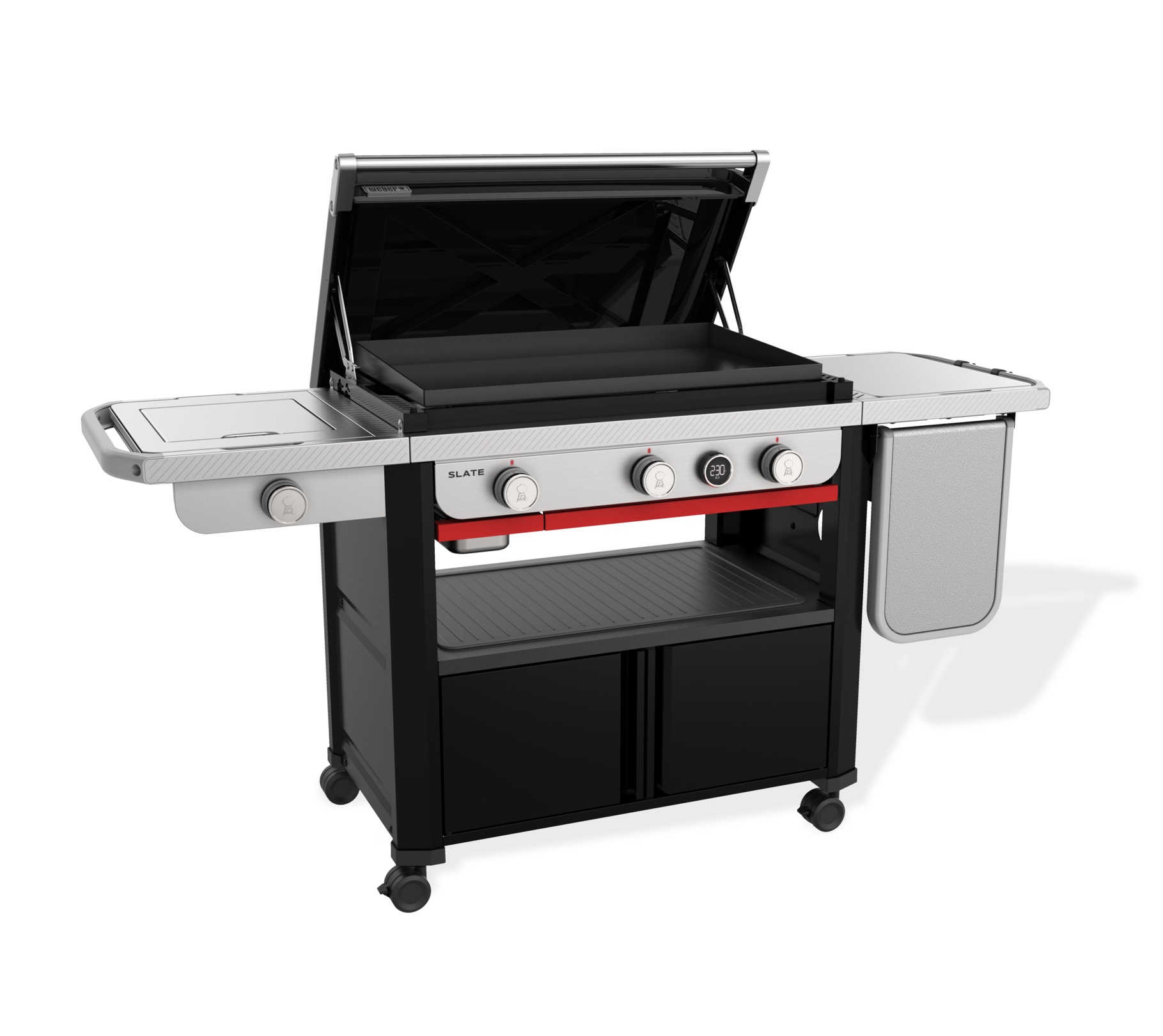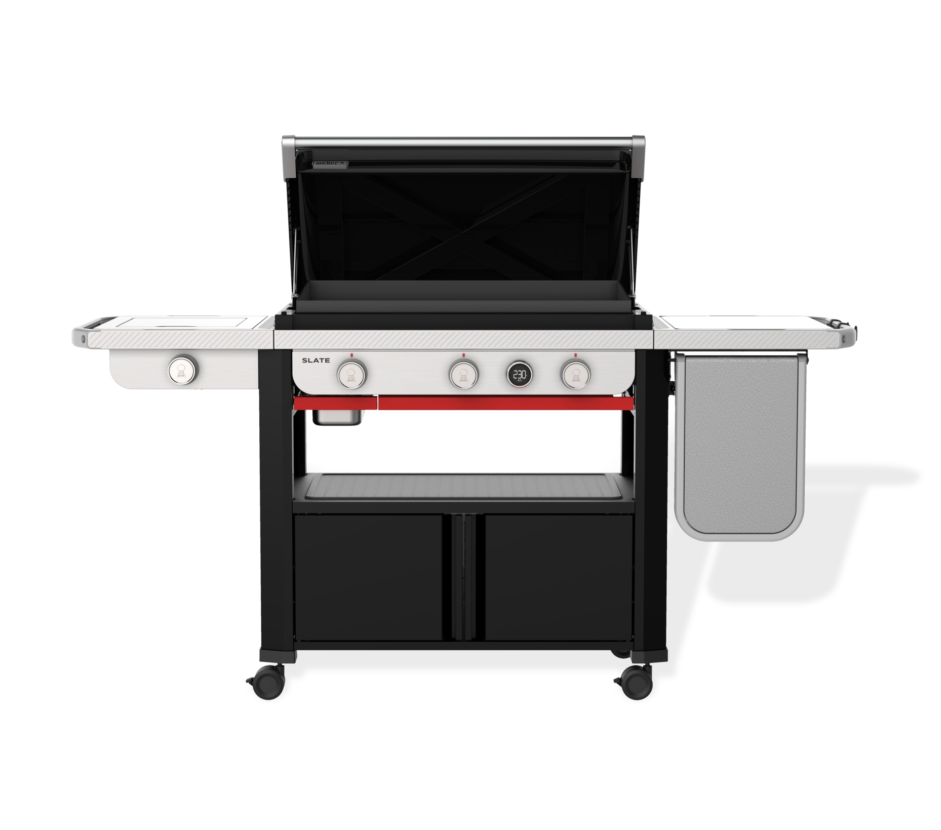 Und mit dem Weber Works Zubereitungs-, Grill- und Aufbewahrungssystem können Sie Ihre Grill- und Reinigungsutensilien griffbereit aufbewahren, Speisen und Gewürze von der Küche zur Plancha transportieren, den Seitentisch in eine Zubereitungsstation verwandeln und Ihr Equipment in dicht verschlossenen Behältern verstauen (Zubehör separat erhältlich).