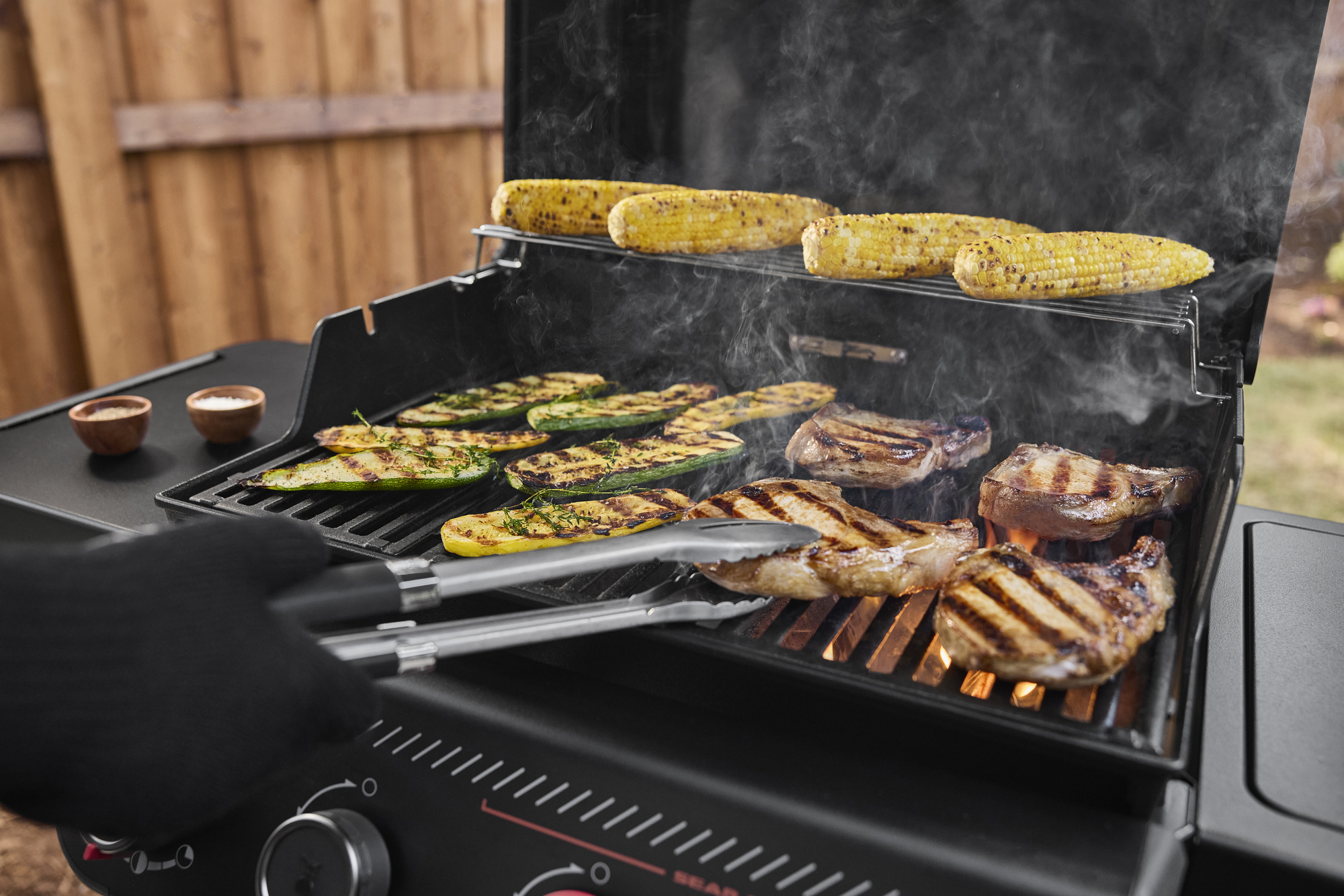 Erzeugen Sie kräftige, aromatische Grillmuster auf Fleisch, Fisch und Gemüse mit zwei Boost-Brennern, die bis zu 40 % mehr Leistung in der Sear Zone freisetzen. Mit der Snap-Jet-Zündung können Sie jeden einzelnen Brenner mit einer Hand zünden und die Hitze in einem sehr großen Temperaturbereich präzise steuern. Dank des innovativen digitalen Thermometers, das im Seitentisch integriert ist, behalten Sie jederzeit die volle Kontrolle über die Temperatur – ob beim langsamen Garen oder beim scharfen Anbraten mit der Sear Boost Funktion.
