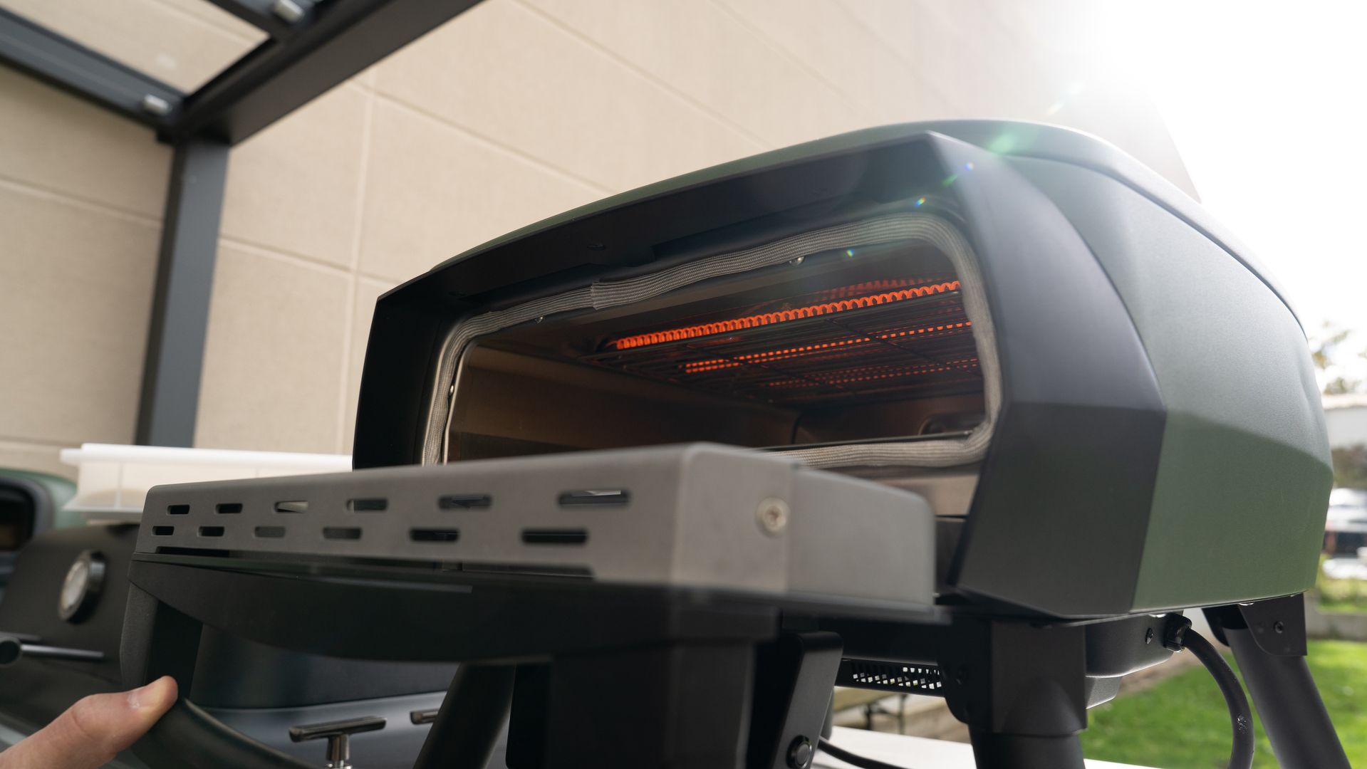 - Booster-Heizelement (800 Watt) unter dem Pizzastein für Temperaturen bis 500 °C