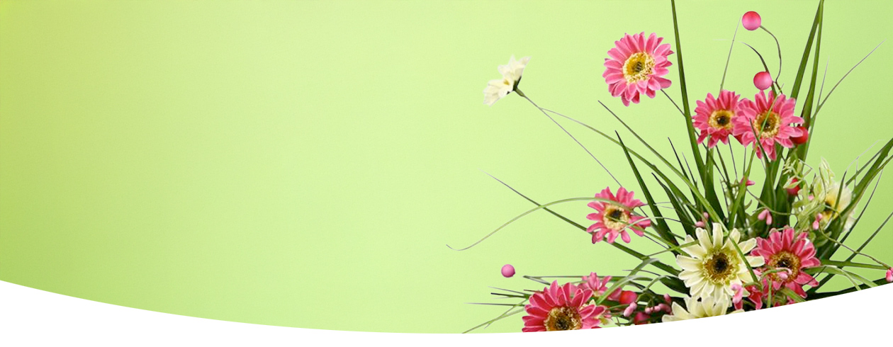 - grün mit Blüten in rosa und weiß