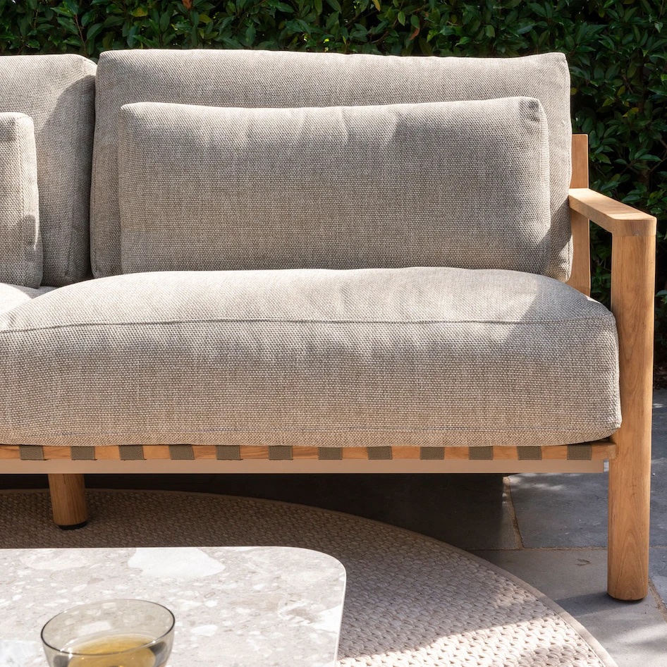 - Dieses Sofa ist aus naturbelassenem Teakholz gefertigt