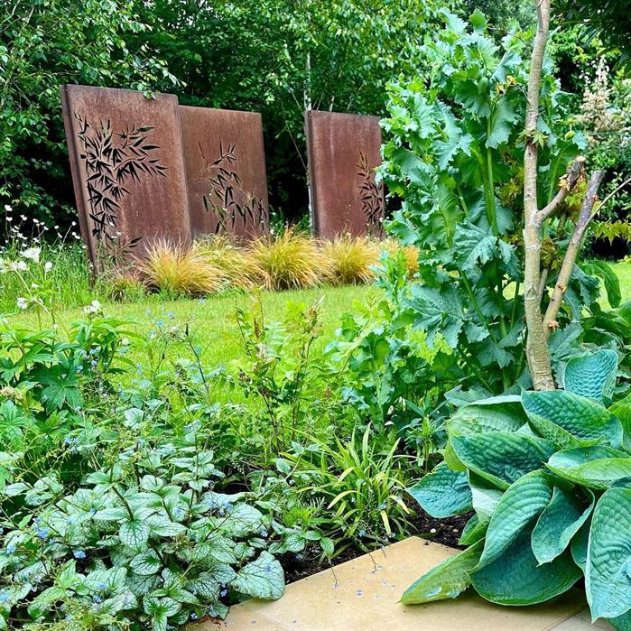 Darüber hinaus verleiht das Cortenstahlpaneel dem Garten ein warmes Aussehen. Das liegt vor allem an der orange-braunen Farbe des Materials, die auf einer natürlichen Rostschicht beruht. Ein anderer Name für Cortenstahl ist wetterfester Stahl: Witterungsbedingungen haben einen positiven Einfluss auf diese Paneele.