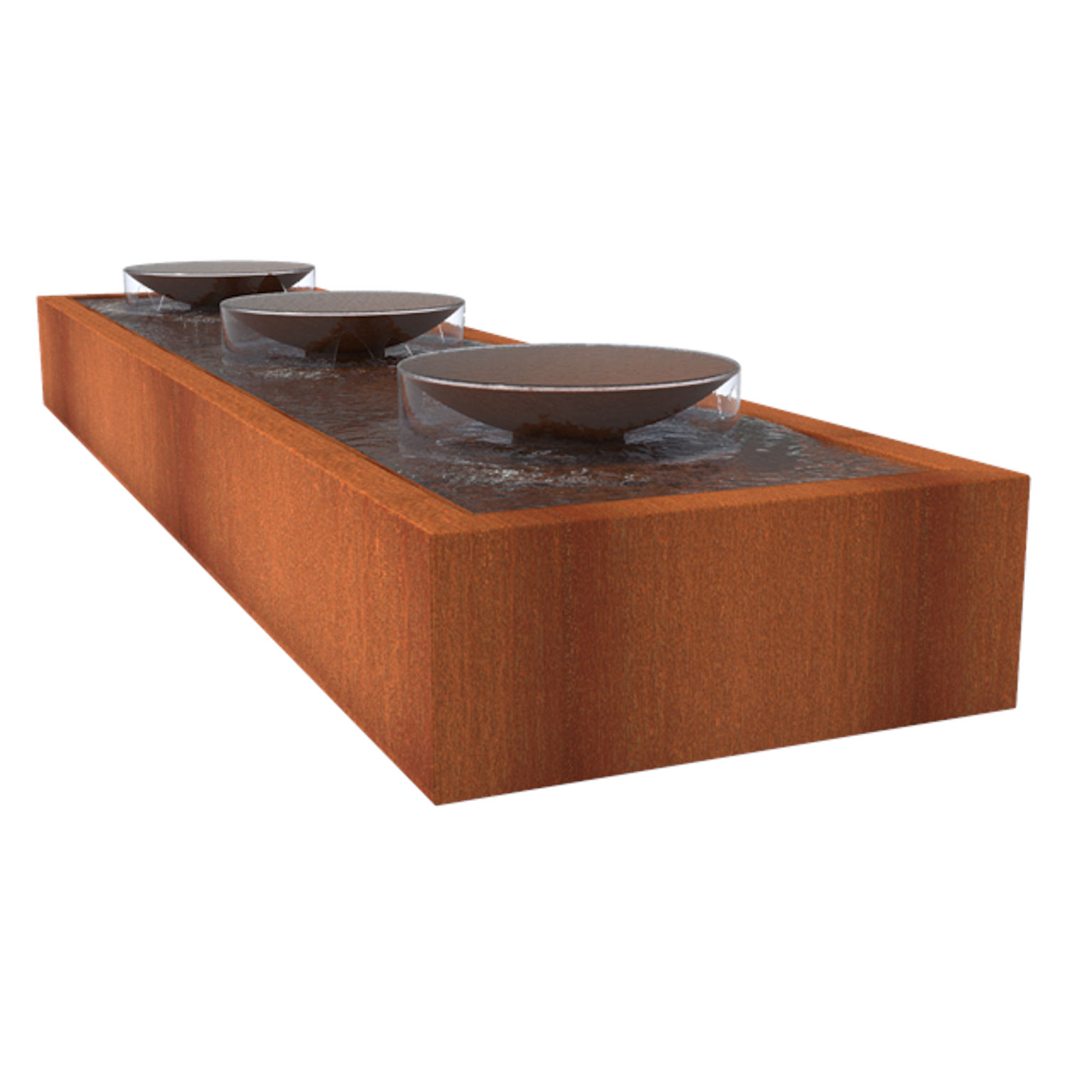 Adezz Wassertisch mit Schalen Corten-Stahl Rost braun/orange Wasserspiel Pumpe LED verschied. Größen