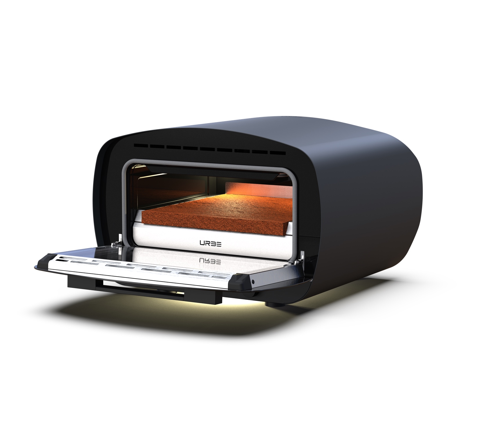Ob drinnen oder draußen, URBE passt sich Ihren Bedürfnissen an. Dank seines robusten Designs können Sie URBE das ganze Jahr über verwenden. Die Installation ist sofort erledigt, legen Sie einfach die Alfa-Steinplatte in die Backkammer, stecken Sie den Ofen ein und schalten Sie ihn ein. Er kann problemlos auf jeder flachen Oberfläche platziert werden, einschließlich einer Standard-Küchentheke, die normalerweise 60 cm tief ist. Auch der Innenraum ist für den Komfort ausgelegt: 40 cm Breite – mehr als ausreichend für eine Pizza.