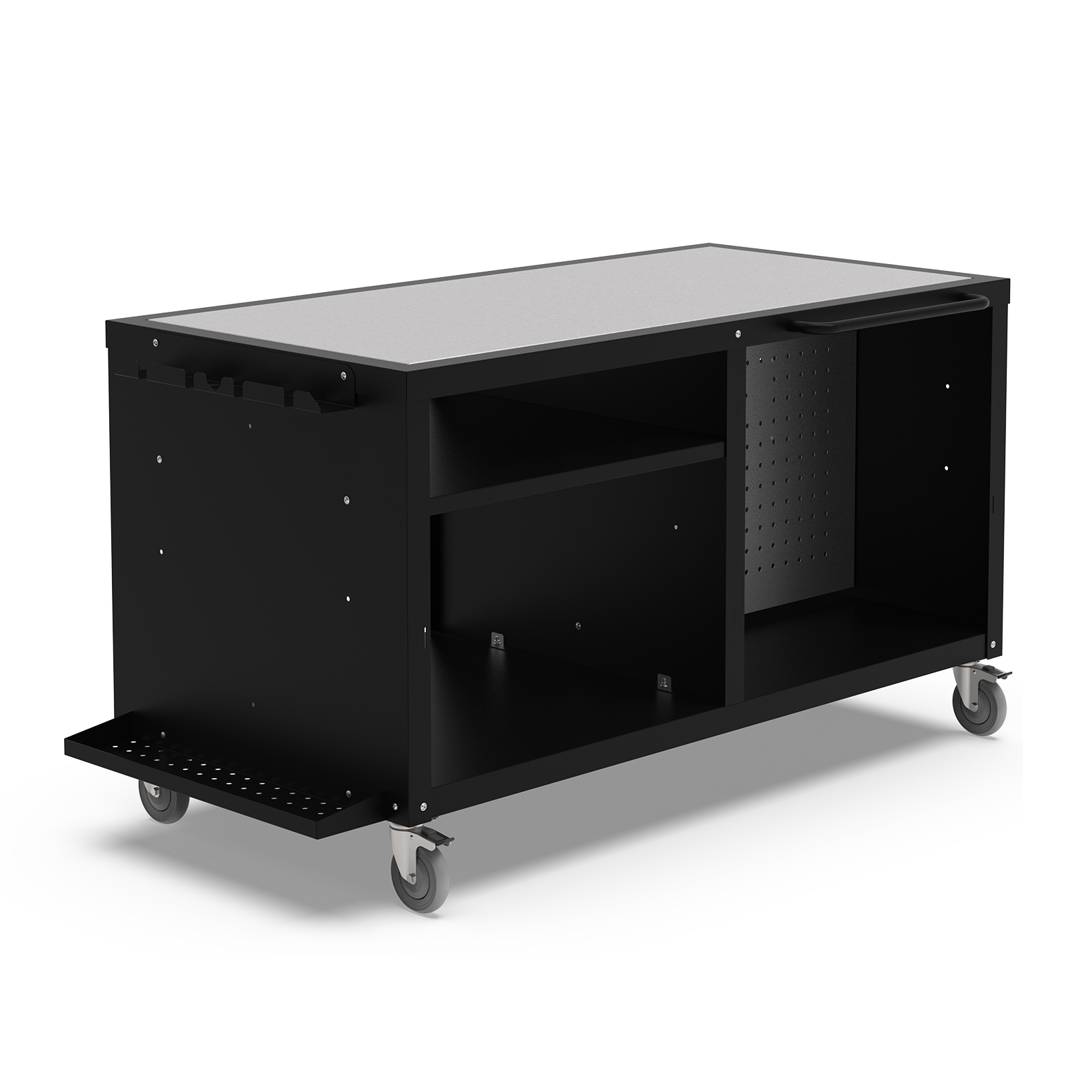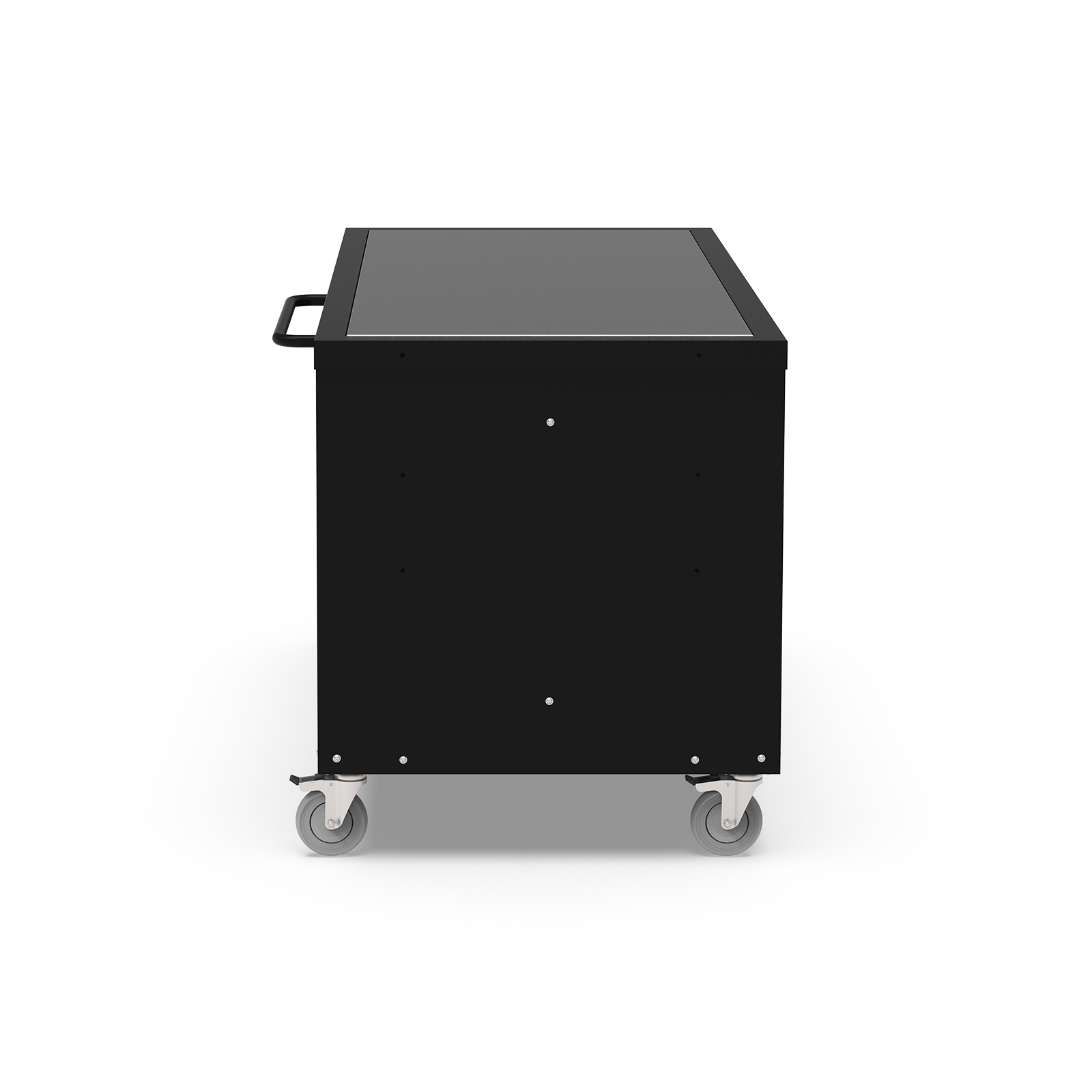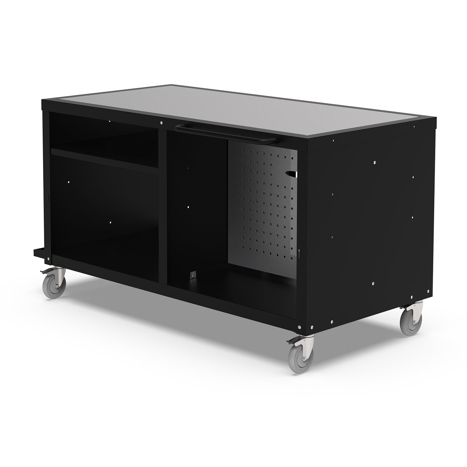 - 4 robuste Rollen mit Bremse für sichere und stabile Mobilität