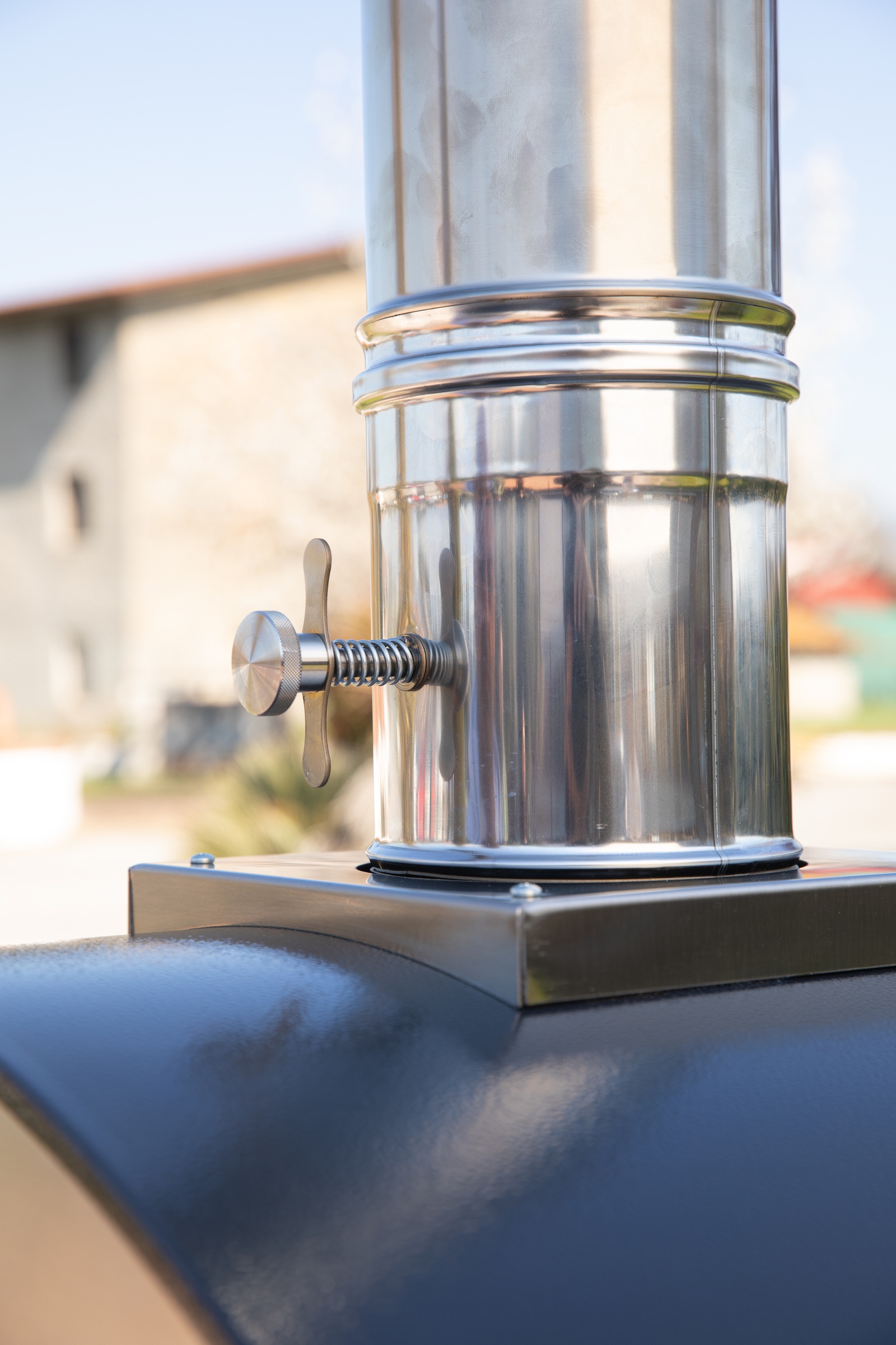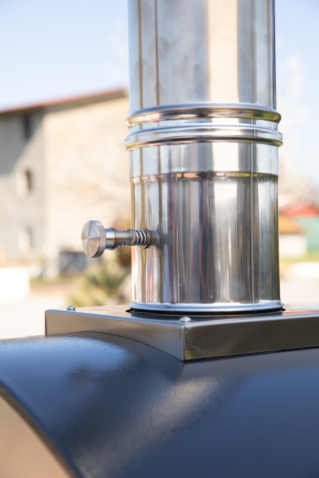 Der Einsatz mit Drosselklappe wird an der Basis des Rauchabzugs angebracht. Damit lässt sich die Temperatur präzise regulieren, so dass die verschiedenen Rezepte von Pulled Pork bis Vollkornbrot perfekt gelingen.
