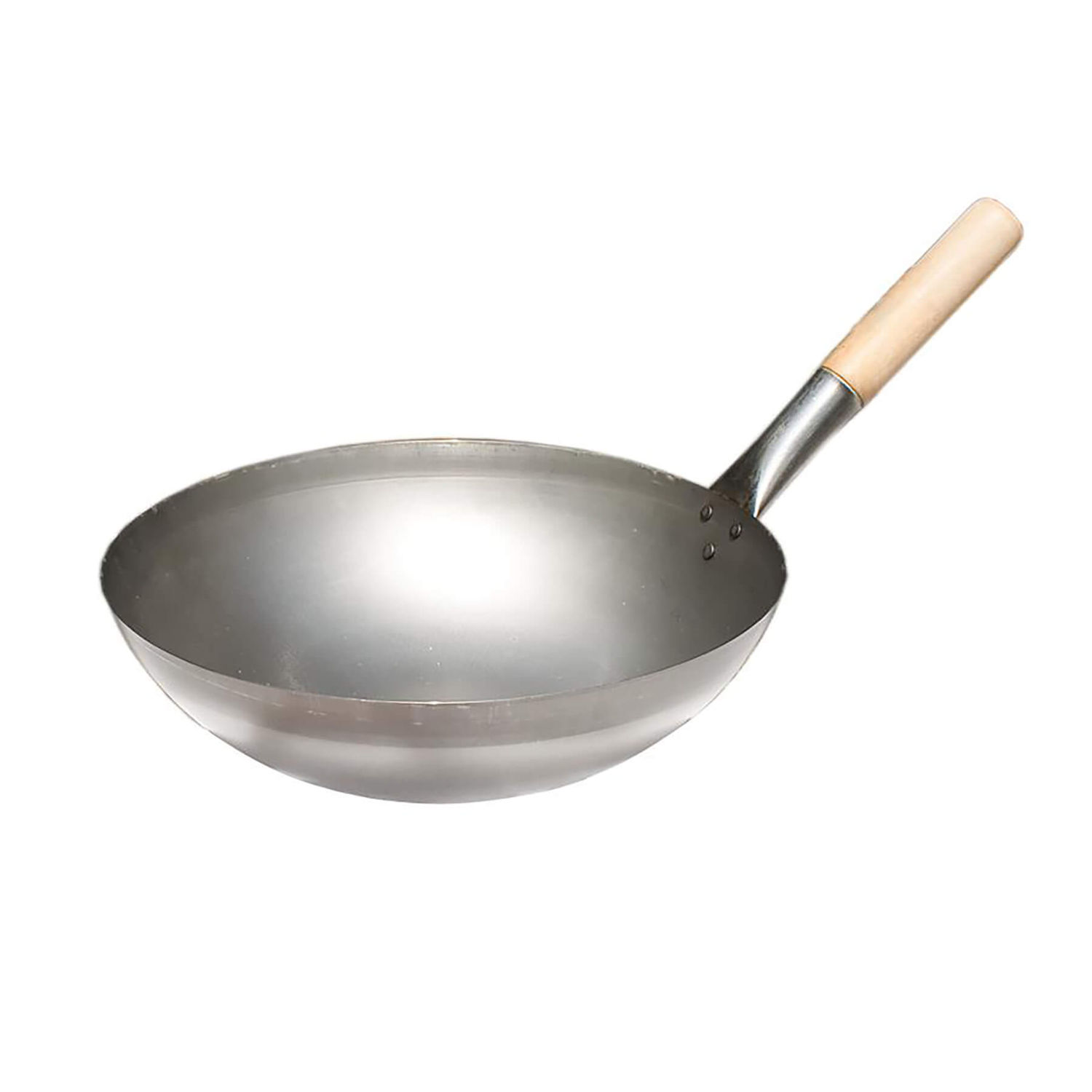 - chinesische Wokpfanne mit rundem Boden und Wokring aus Edelstahl