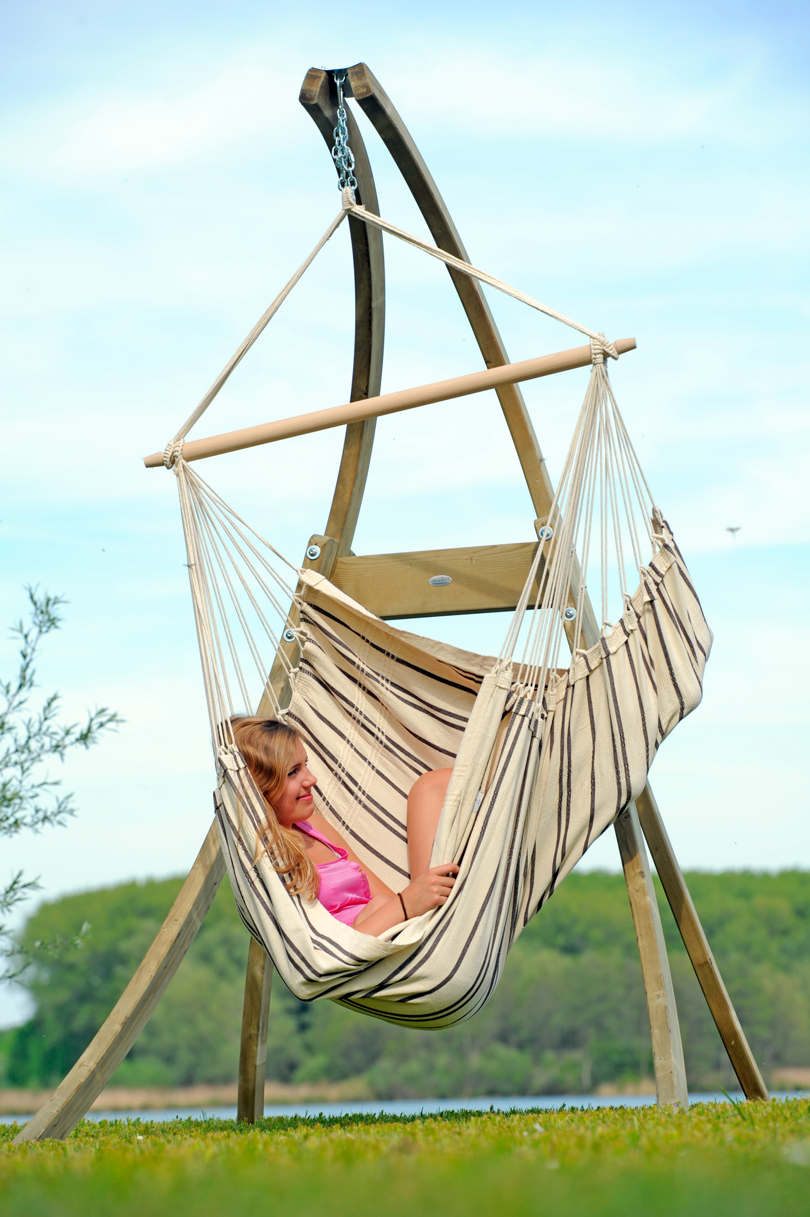 Optisch ist das Hängesesselgestell ein Hingucker. Stilvoll im Curved Design - absolut im Trend. Mit der korrossionsgeschützte Kettenaufhängung kann man dieses Gestell flexibel für verschiedene Höhen einstellen. Die spezielle Tauchbadimprägnierung macht das Gestell wetterfest - es kann also draussen bleiben. Die Hängesesselgestelle aus Holz sind im Vergleich zu den Metallgestellen wetterbeständiger, denn sie rosten nicht.