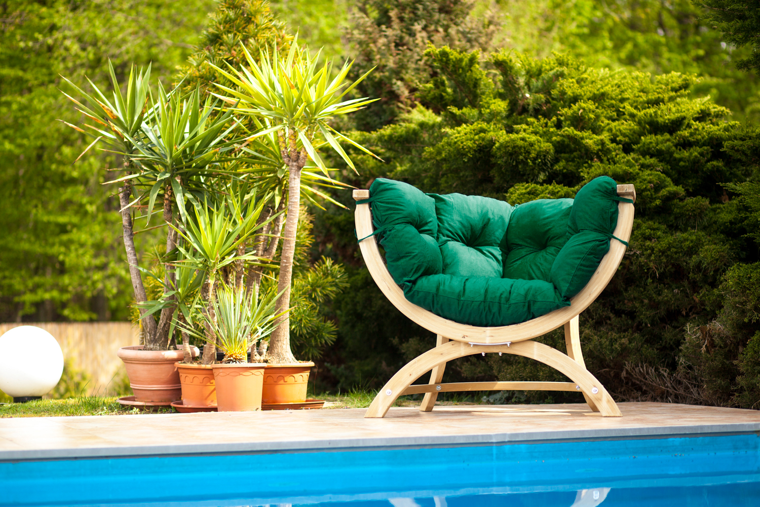 Dieser weich gepolsterte Sessel ist ein Schmuckstück in jedem Haus und in jedem Garten. Hergestellt aus wetterfest behandelter Fichte. Die hochwertige Schichtverleimung sorgt für höchste Stabilität und Sicherheit. Alle Beschläge sind korrosionsgeschützt verzinkt.