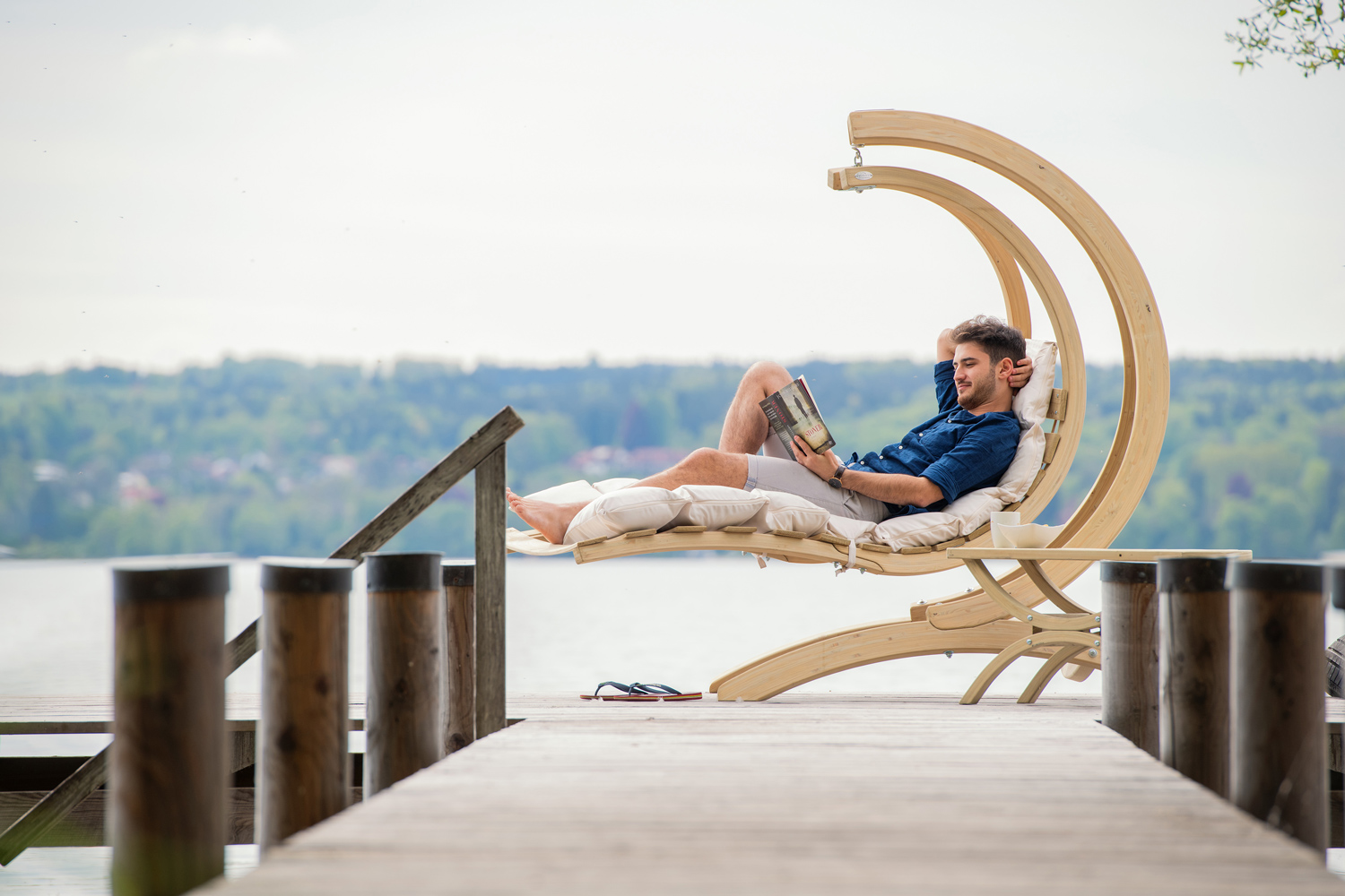 Swing Lounger verbindet höchsten Schwebekomfort mit modernem, stylischem Design als Blickfang für zu Hause. Er ist als sanft wiegende Liege auf dem Boden oder aufgehängt als perfekt ausbalancierte Schwebeliege verwendbar.