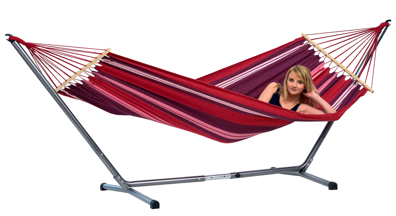 Produktinformationen "Amazonas Summer Set Hängematten-Set mit Hängematten-Gestell lila/rot/gestreift"