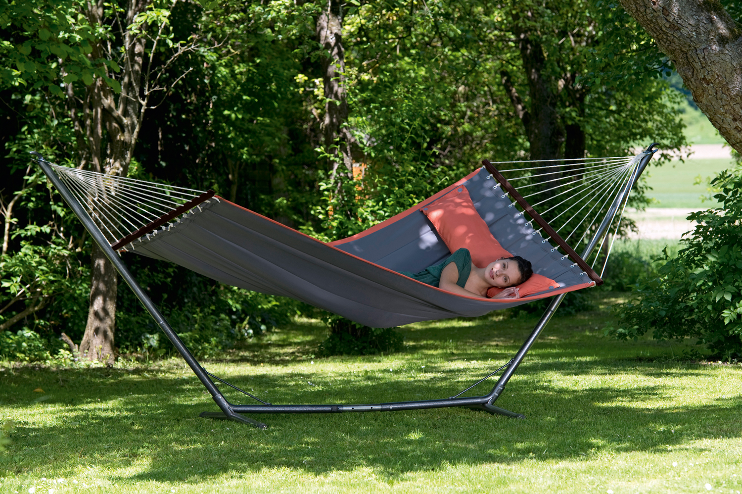 - XL Premium Stabhängematte mit abknöpfbarem Kissen für max. 2 Personen