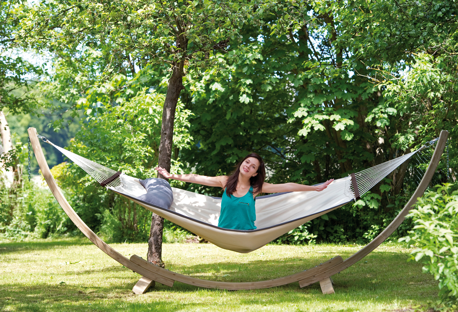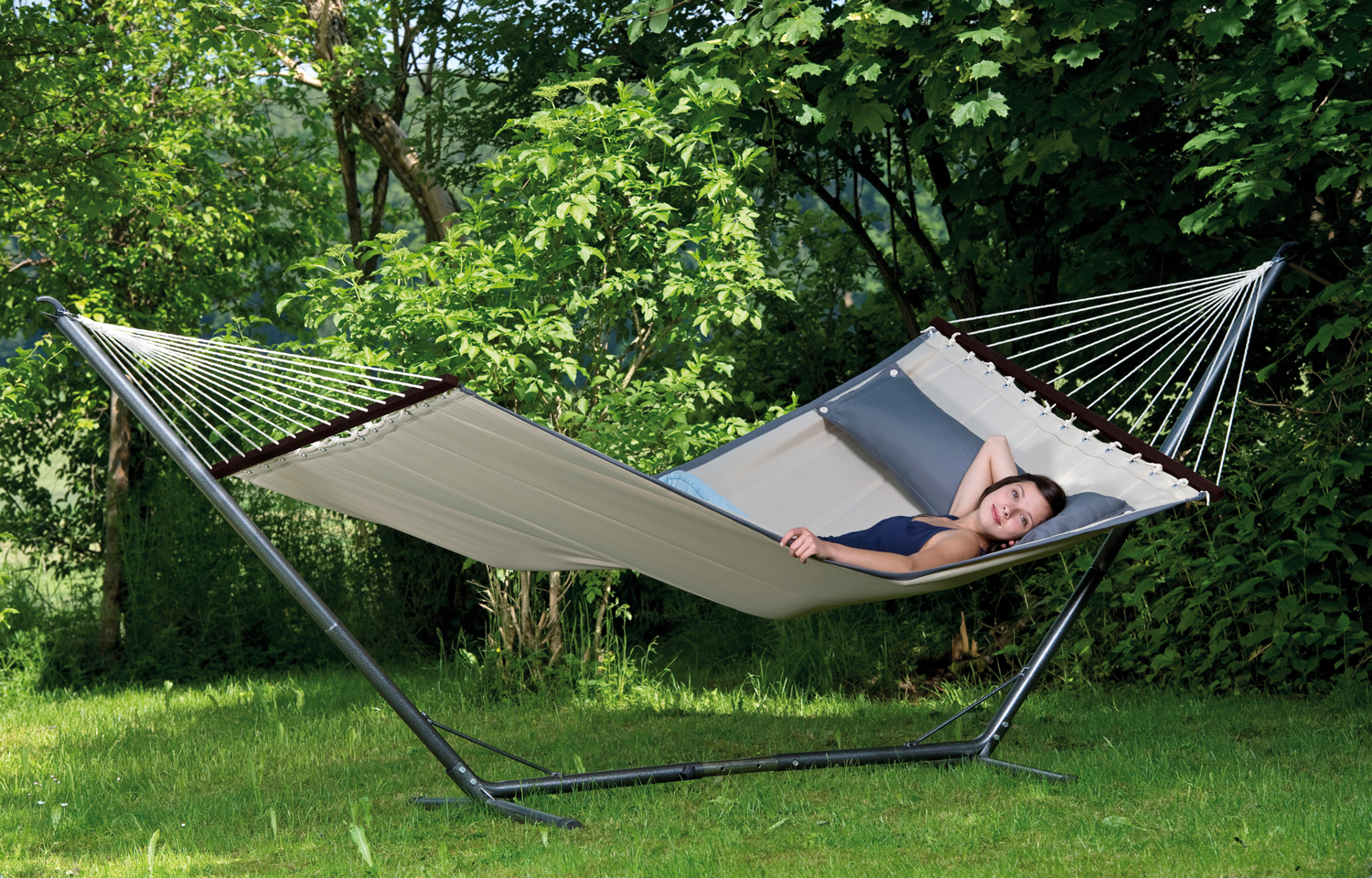 - XL Premium Stabhängematte mit abknöpfbarem Kissen für max. 2 Personen