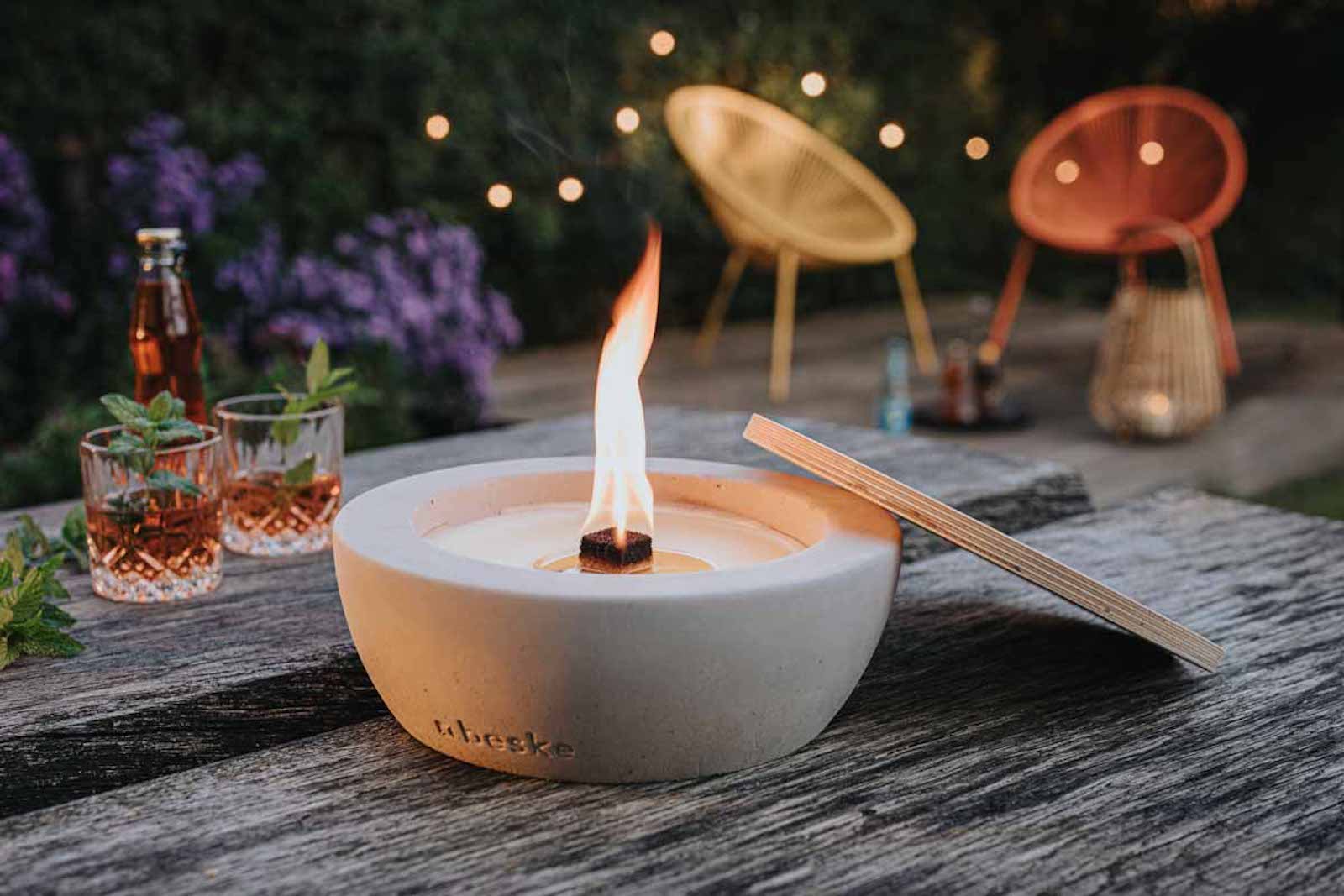 BETONFEUER® DER BESKE-MANUFAKTUR – DIE IDEE DAHINTER: Die Betonfeuer wurden einst entwickelt, um eine sinnvolle Verwendung für Kerzenreste zu ermöglichen. Wer kennt es nicht: Die meisten Kerzen brennen nicht komplett runter. Wachs allerdings ist teuer und jeder liebt es eine Flamme, egal ob Kerze, Lagerfeuer oder Gartenfackel, in naher Umgebung um sich herum zu haben. Das Betonfeuer ist die perfekte Lösung. Der natürlich abbaubare Dauerdocht verwandelt Kerzenreste in langanhaltende Gemütlichkeit und Romantik und erzeugt im Handumdrehen eine echte Lagerfeueratmosphäre.