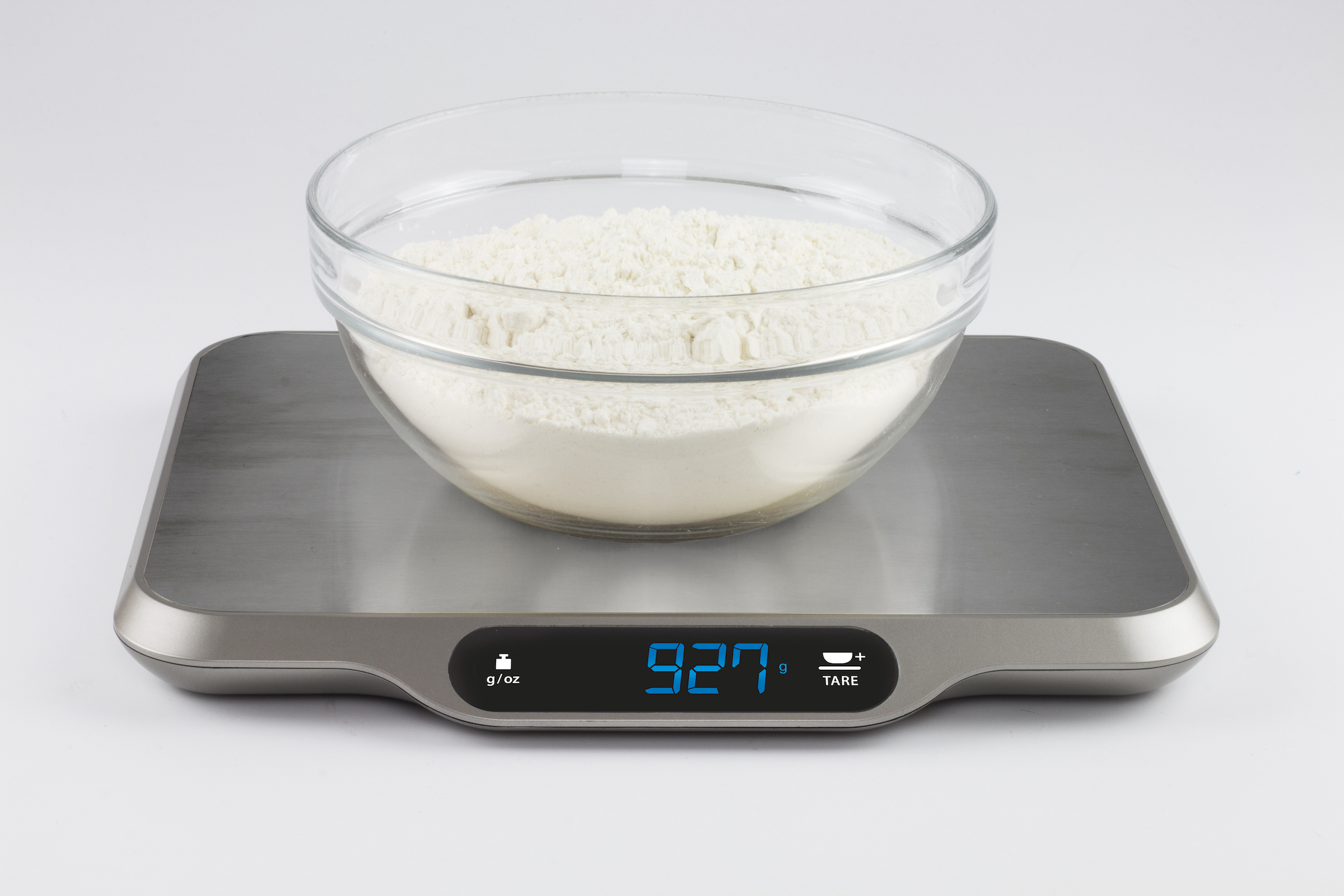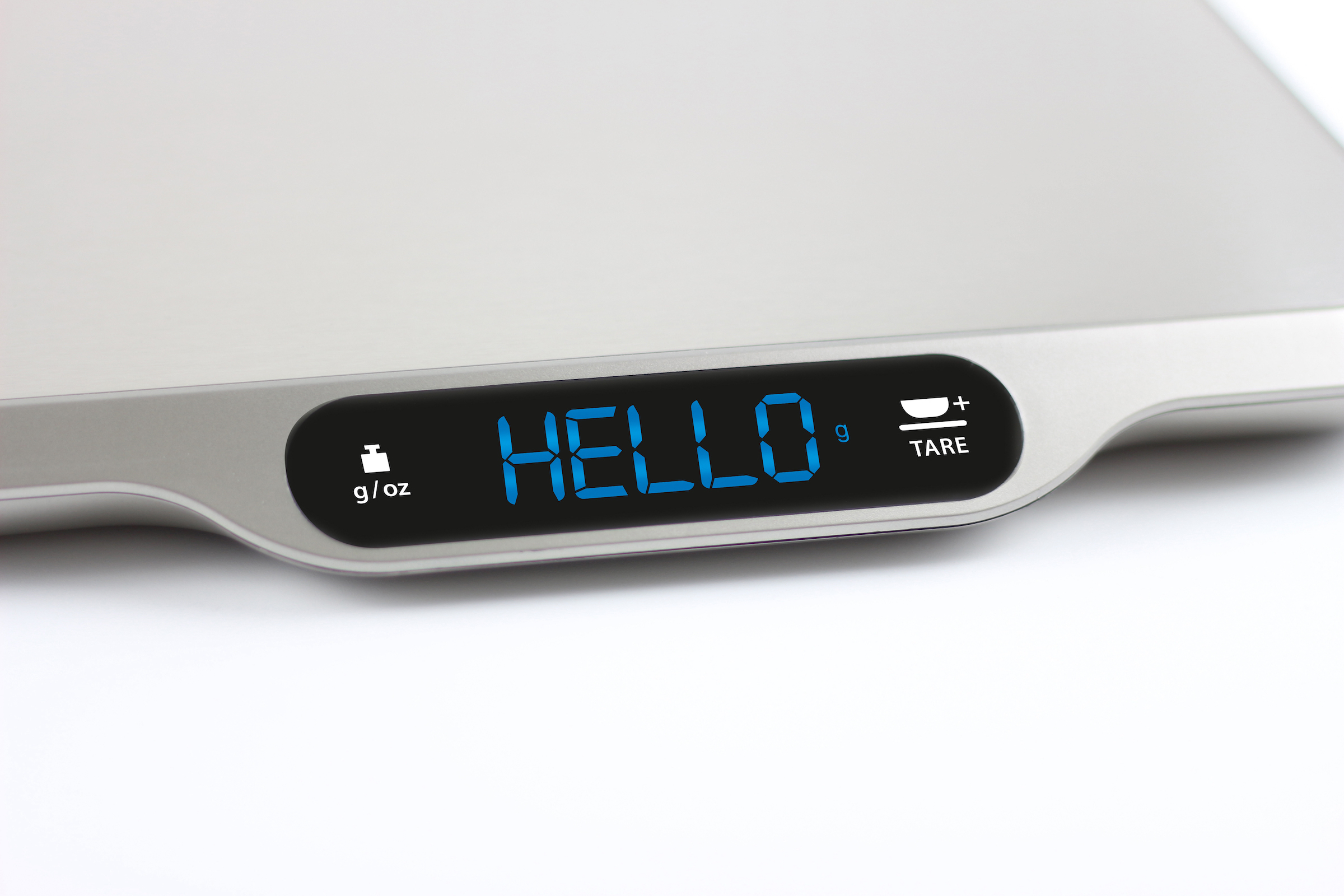 - Extra große Wiegefläche (30 x 22 cm) aus gebürstetem Edelstahl