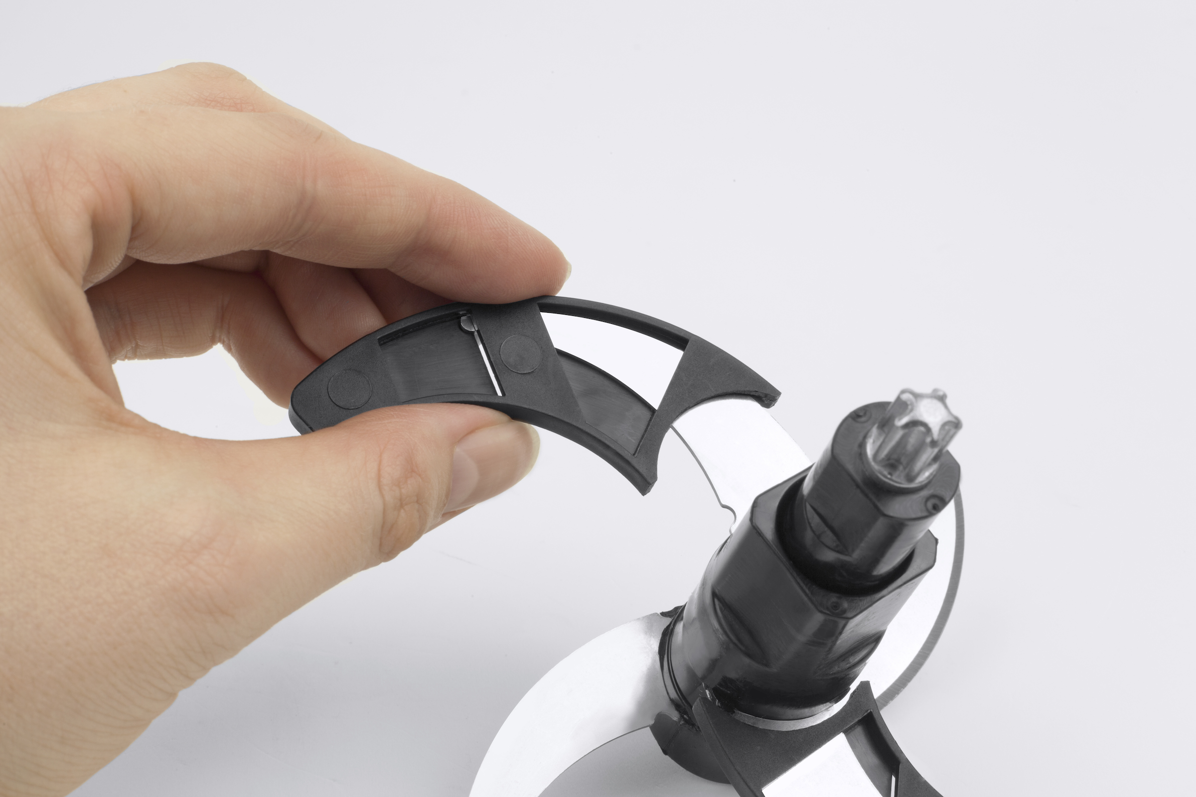 - Inklusive Zubehör: Glasgefäß, Anti-Rutsch-Ring, Vierfach-Klingen mit Schutzkappen