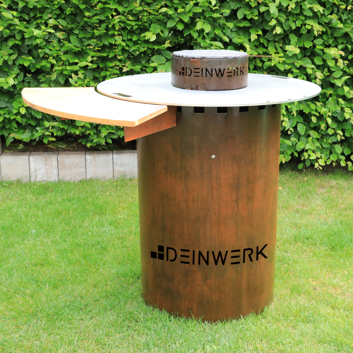 1x DEINWERK Grillfass Corten mit Plancha 90 cm, Grillrost und Heber