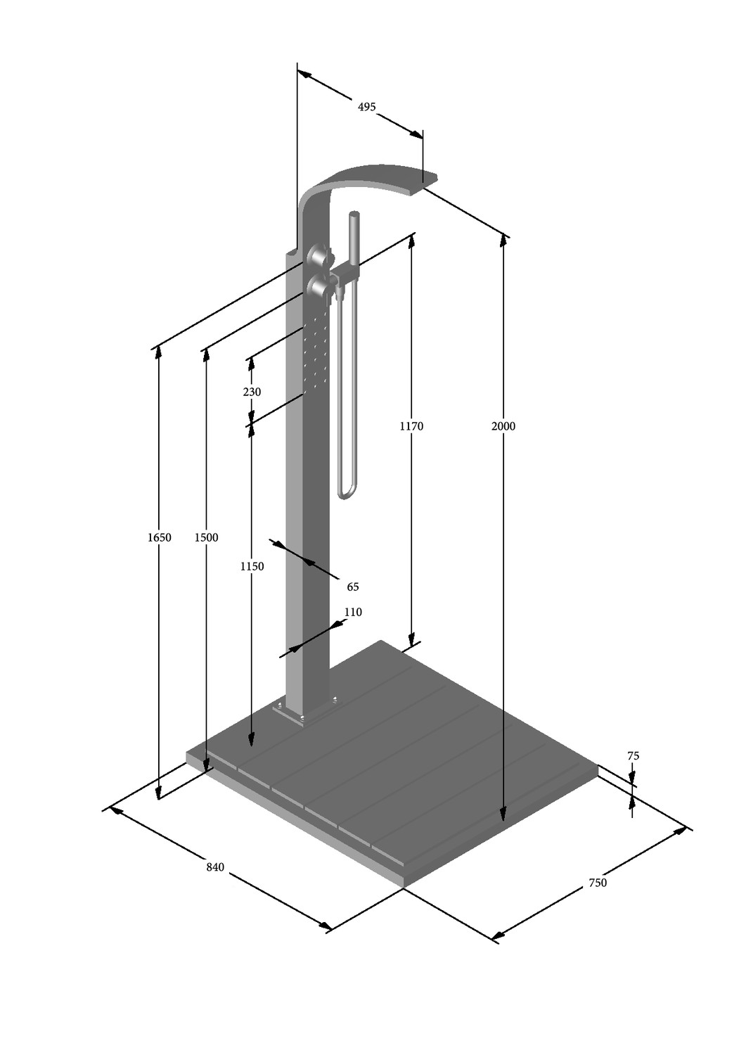 - Höhe Boden bis Duschkopf: ca. 205 cm