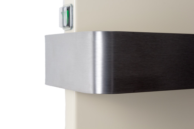 Der Handtuchhalter ist aus gebürstetem Edelstahl und verleiht der Heizung eine zeitlose Optik. Das Besondere an der „Handtuchheizung“ ist die zweistufige Leistungsschaltung.
