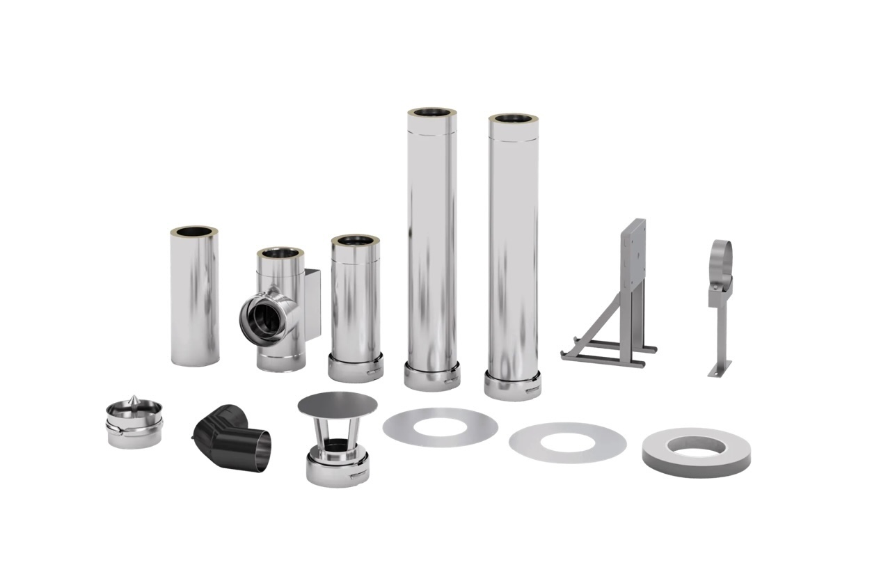 Durch das einfache und selbsterklärende Stecksystem sind die einzelnen Rohre schnell und problemlos montiert. Für minimale Sicherheitsabstände zu brennbaren Materialien, ist das System auf der gesamten Länge aus doppelwandigen isolierten Kaminrohren.
