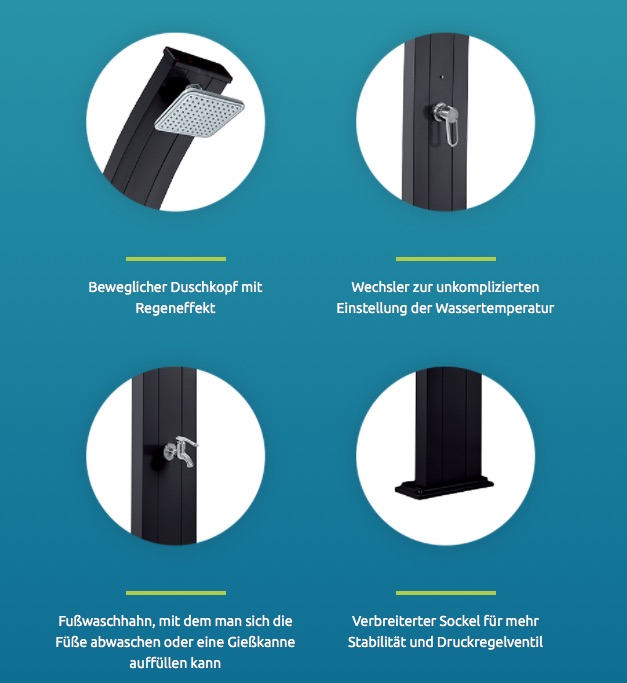 Produktinformationen "Formidra Spring Solardusche 30 Liter Gartendusche Außendusche Aluminium Anthrazit"