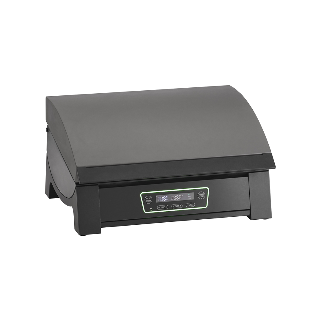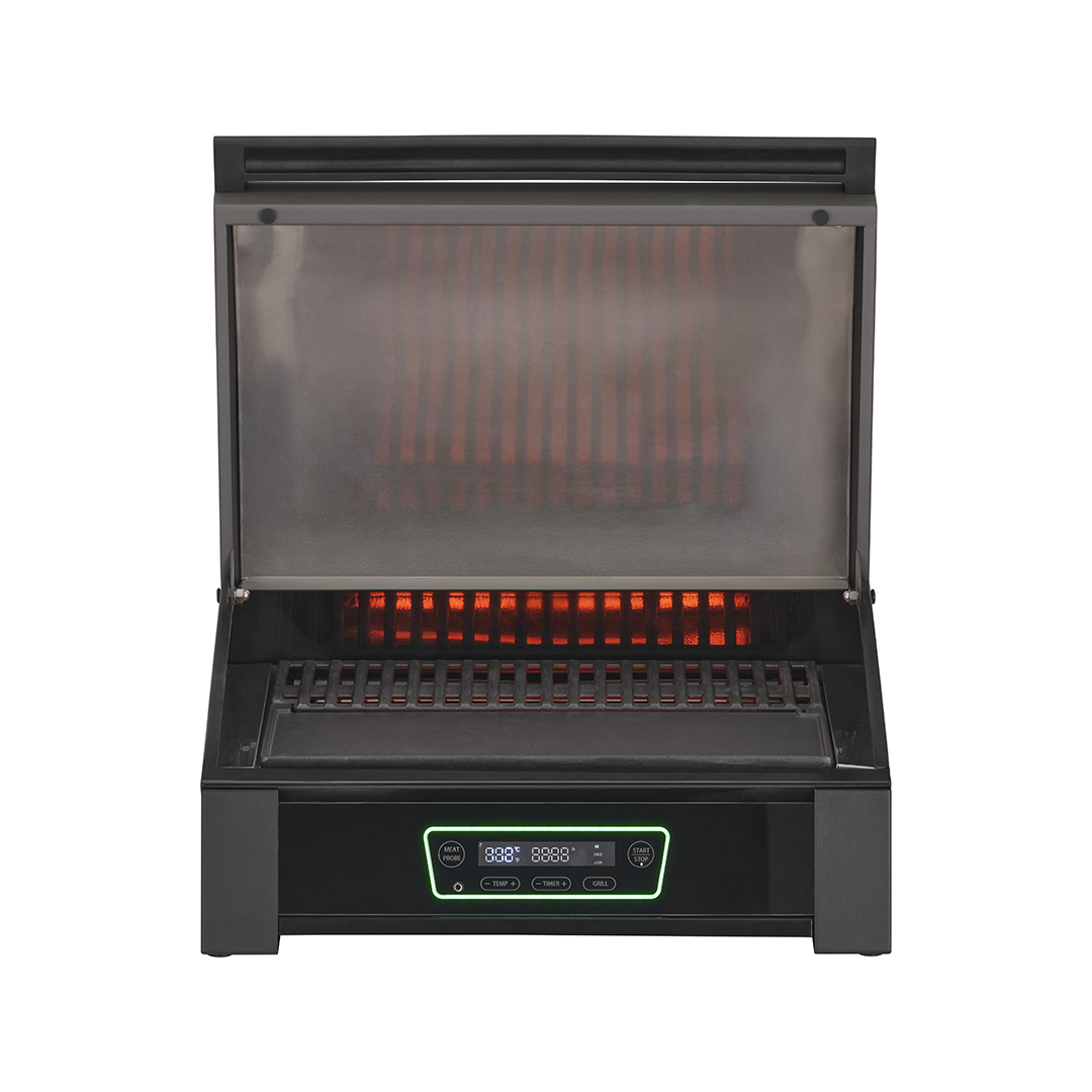 In nur 10 Minuten erreicht dieser elektrische Powergrill eine Temperatur von bis zu 360 Grad Celsius. Er ist mit einem vollständig integrierten Bedienfeld an der Vorderseite ausgestattet – inklusive Grillmodi, Fleischsonde und einstellbarer Temperaturregelung. Dank des integrierten Timers haben Sie genügend Zeit und Flexibilität, um Beilagen vorzubereiten oder einfach das Grillerlebnis zu genießen. Durch das verbesserte Design erleben Sie ein rauchfreies und effizientes Grillerlebnis – ideal für jede Umgebung und Gelegenheit, auch für den Balkon!