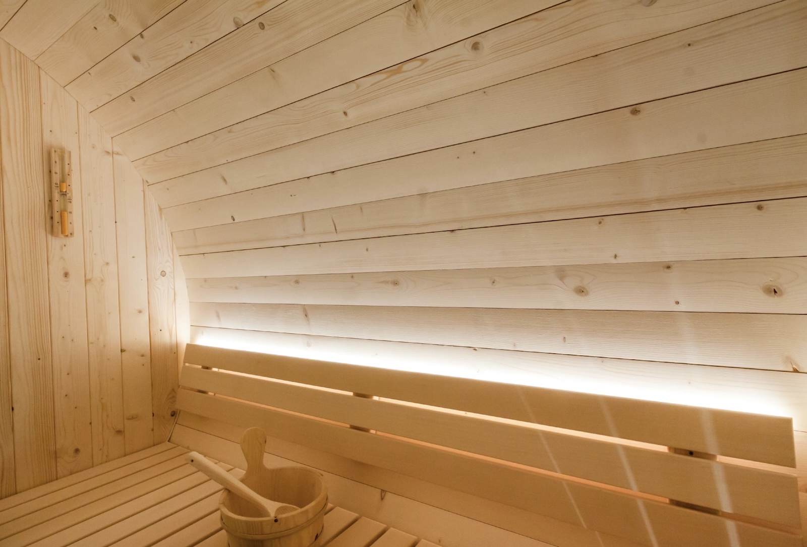 Mit der modernen Panorama Fasssauna "Kuusi" holst du das finnische Saunaerlebnis zu dir nachhause. Dank der natürlichen Form fügt sich das Fass in jeden Garten ein und bietet Platz für bis zu 6 Personen. Das robuste Fichtenholz und die Schindeln aus Bitumen machen die Gartensauna ideal für den Außenbereich. Im Lieferumfang ist ein weißes LED Licht für einen angenehmen entspannenden Saunagang enthalten.