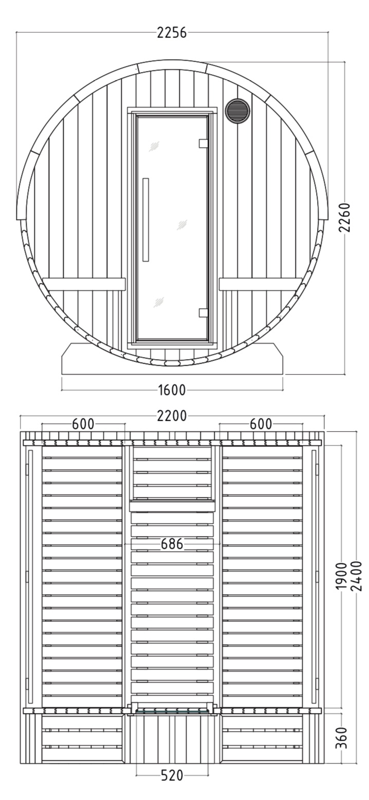 - Abmessungen: 220 x 240 x 226 cm (Ø x Tiefe x Höhe)