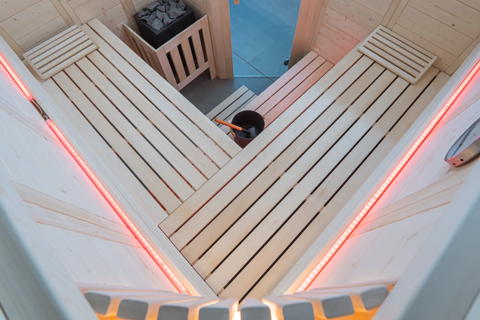 (Saunaofen, LED-Beleuchtung, Saunakübel und Kelle nicht im Lieferumfang enthalten - Optional erhältlich!)
