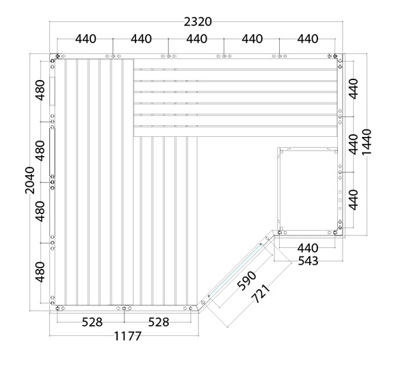 - 3 Bänke (2 x 620 mm und 1 x 530 mm)