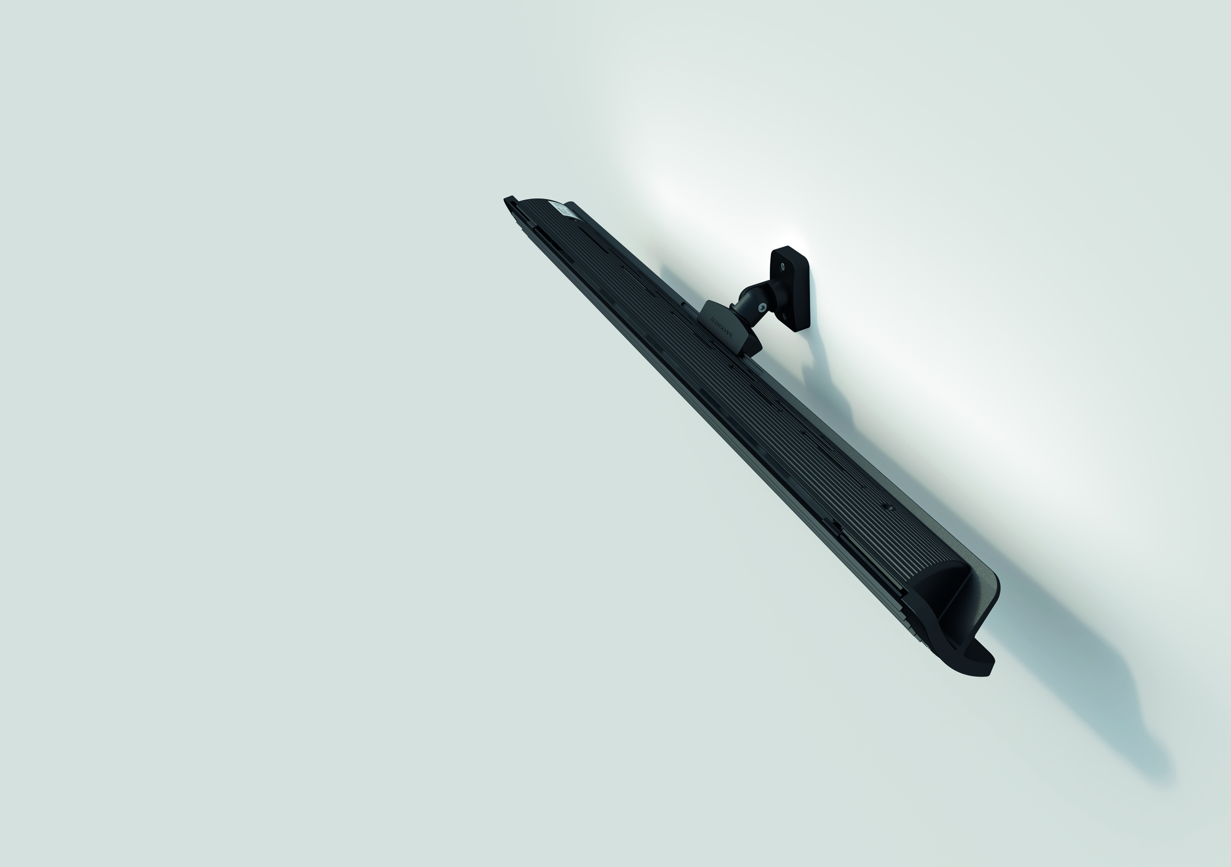 Mit der Halterung kann der Next an Wand oder Decke montiert und mittels des Drehgelenks den individuellen Bedürfnissen nach ausgerichtet werden. Extern kann der NEXT Heizstrahler in Smart Home Systeme von Somfy integriert oder mit der Smartbox, zur Steuerung per Fernbedienung, erweitert werden.