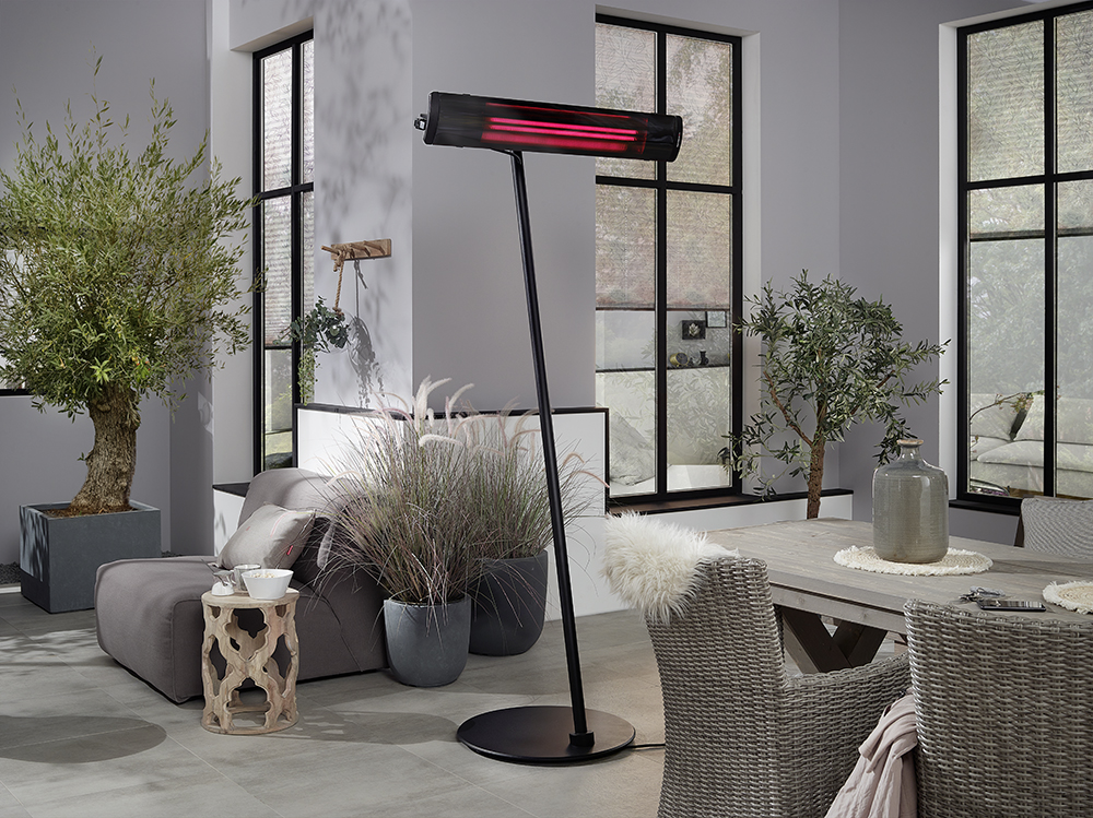 Das "Stand" Stativ "befreit" jetzt auch den Heatscope-Pure, Pure+ und Next von seinem starren Dasein an Wand oder Decke. Die praktische, mobile und flexible Lösung für die Gartenfeier, aber auch für den Innenbereich, bringt die Wärme dort hin, wo sie gerade benötigt wird. Auch im gewerblichen Bereich, auf Freiluft-Terrassen oder in Restaurants macht das "Stand" Stativ eine überaus gute Figur. Mit einem Eigengewicht von fast 30 Kilogramm weiß das Stativ Böen und Zugluft kräftig Paroli zu bieten.