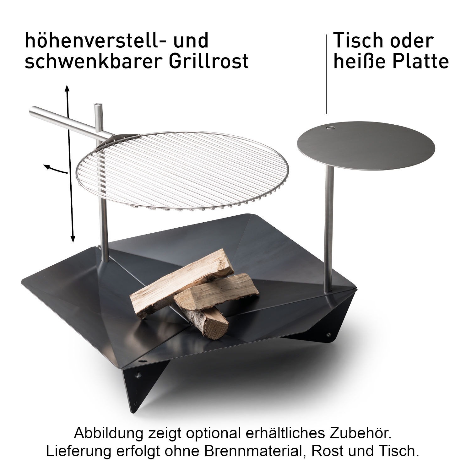 - Grillrost und Grillplatte/Anstecktisch sind als Zubehör separat erhältlich