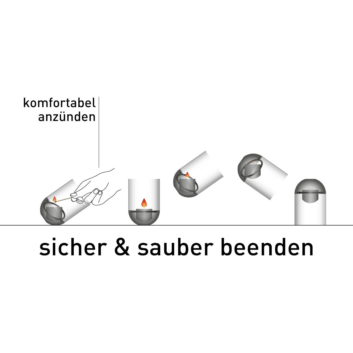 - Zum Löschen der Flamme einfach umdrehen: sicher und einfach