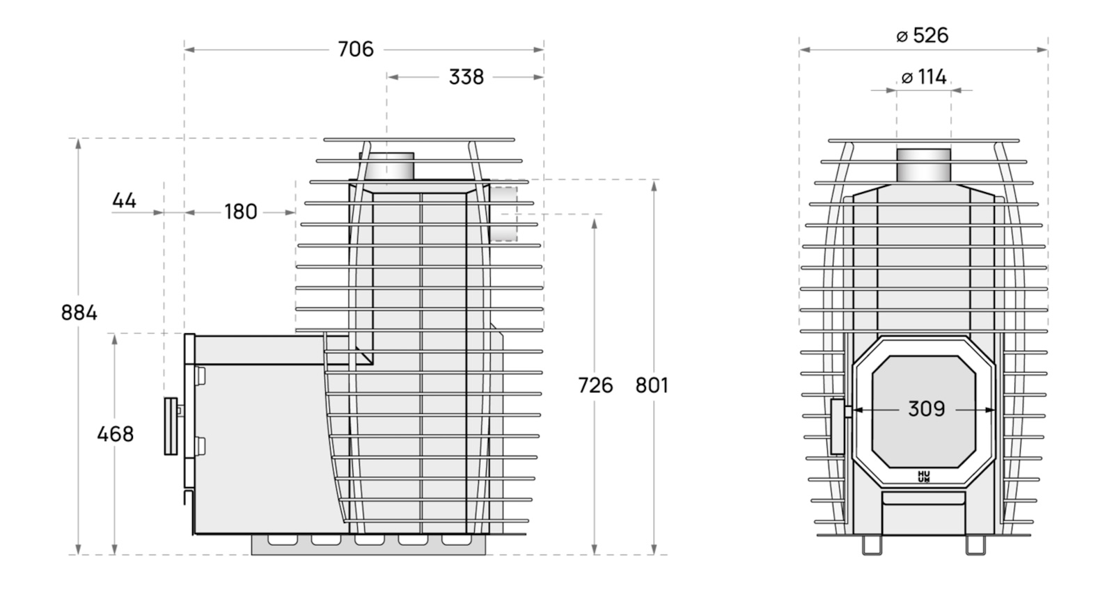 - 1 x HUUM HIVE Flow LS Holz beheizter Saunaofen 9,8 kW Sauna Holzofen mit BimSchV 2