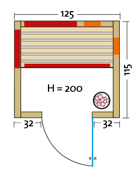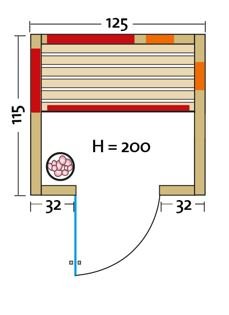 - Abmessung außen (BxTxH): ca. 125x115x200 cm